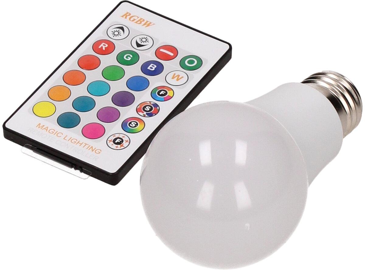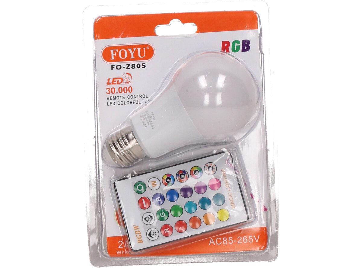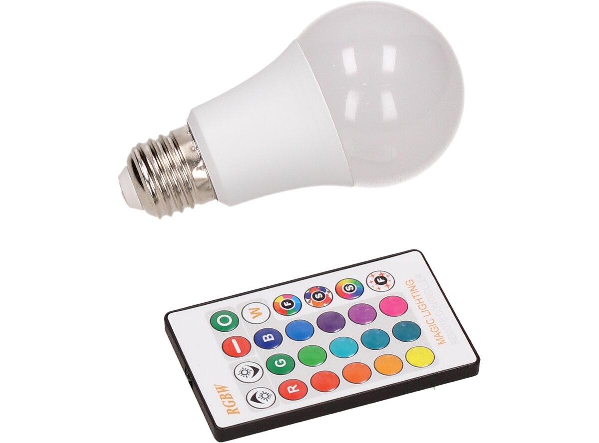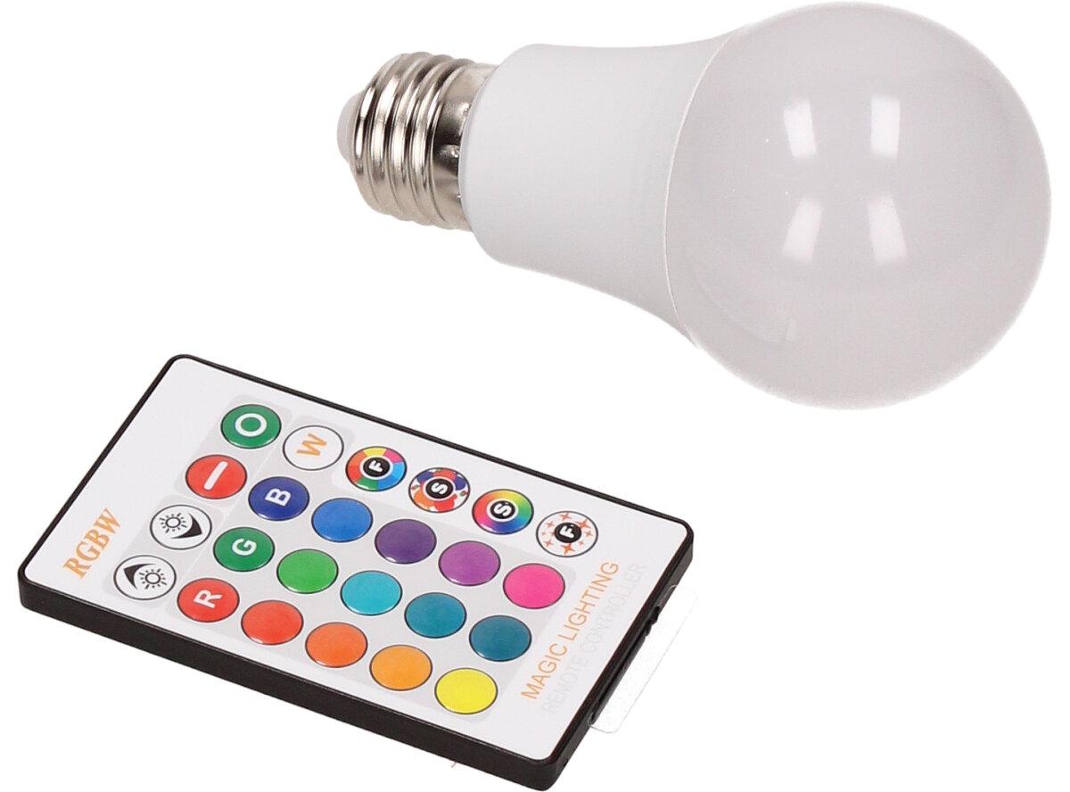 LED žárovka se zabudovaným RGB čipem, u níž je za pomoci dálkového ovládače možné měnit barvy svícení je u mnoho lidí hitem! Je možné nastavit 16 různých barev a 4 světelné efekty, navíc je možné nastavovat i intenzitu svícení. Dosah ovladače je asi 6m. Tato žárovka je vybavena plastovou konstrukcí, která zajišťuje delší životnost. LED RGB žárovka 15W na dálkové ovládání má klasický tvar a nejpoužívanější závit E27.
