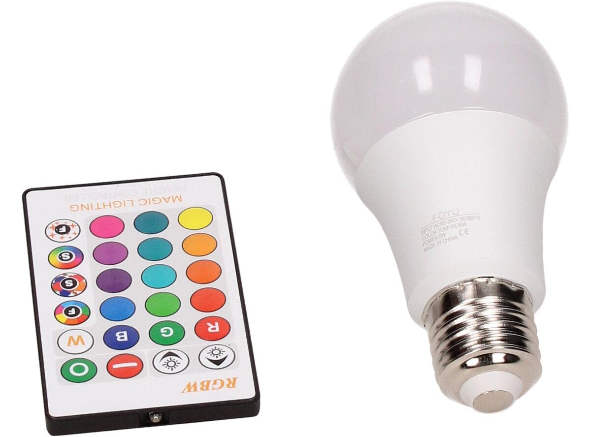 LED žárovka se zabudovaným RGB čipem, u níž je za pomoci dálkového ovládače možné měnit barvy svícení je u mnoho lidí hitem! Je možné nastavit 16 různých barev a 4 světelné efekty, navíc je možné nastavovat i intenzitu svícení. Dosah ovladače je asi 6m. Tato žárovka je vybavena plastovou konstrukcí, která zajišťuje delší životnost. LED RGB žárovka 15W na dálkové ovládání má klasický tvar a nejpoužívanější závit E27.