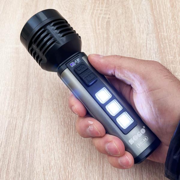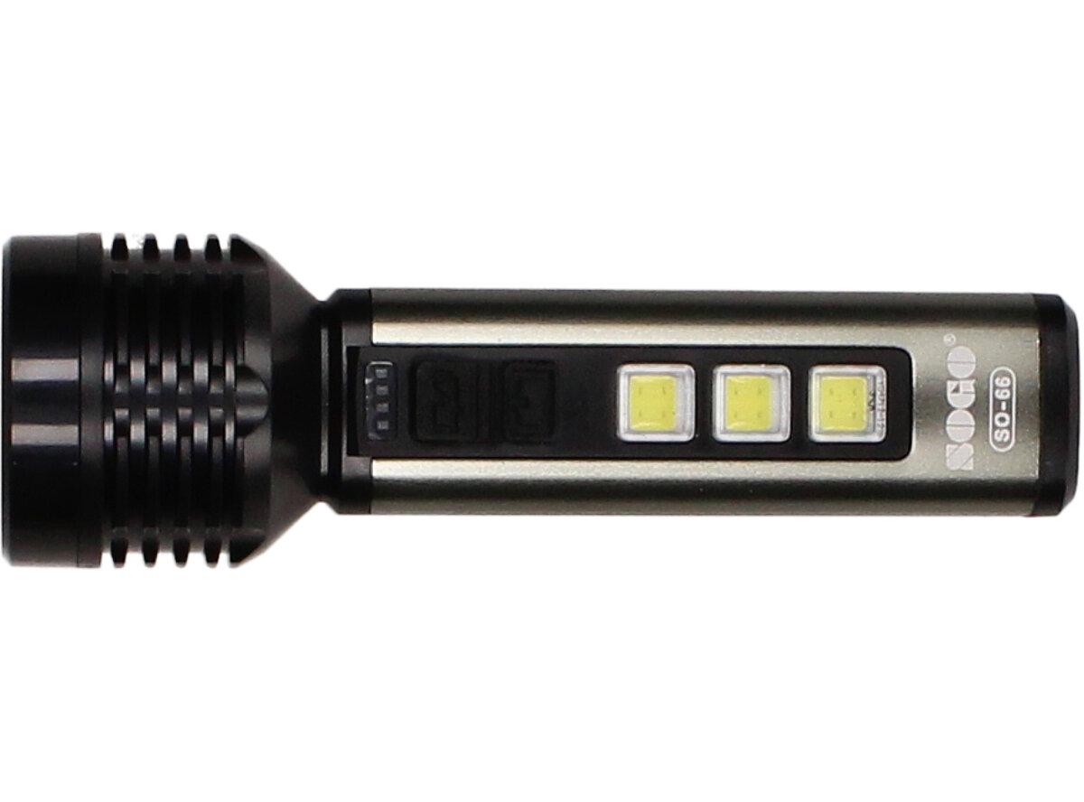 USB nabíjecí baterka Sogo SO-66 je baterka, která vydrží dlouho nabitá a má dvě svítilny, boční a přední
