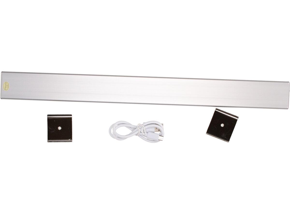 Jedná se o designové interiérové nabíjecí světlo s integrovaným akumulátorem, pohybovým čidlem a magnetickou základnou. Jeho tělo je tenké 9,5mm a dlouhé 40 cm, již při vzetí do ruky je znát kvalita a robusnost provedení světla. Krytí IP 20. Vhodné do skříně, na schody, Do kuchyně, Do dětského pokoje, Do koupelny, Do ložnice, Do obývacího pokoje, Do chodby, Do pracovny, Do jídelny, Do sklepa, Do garáže, Na WC. Vstupní napětí 5V, USB kabel je součástí balení. Výhodou je funkce automatické zapínání a vypínání světla, díky tomuto sensoru se světlo samo zapne a vypne.