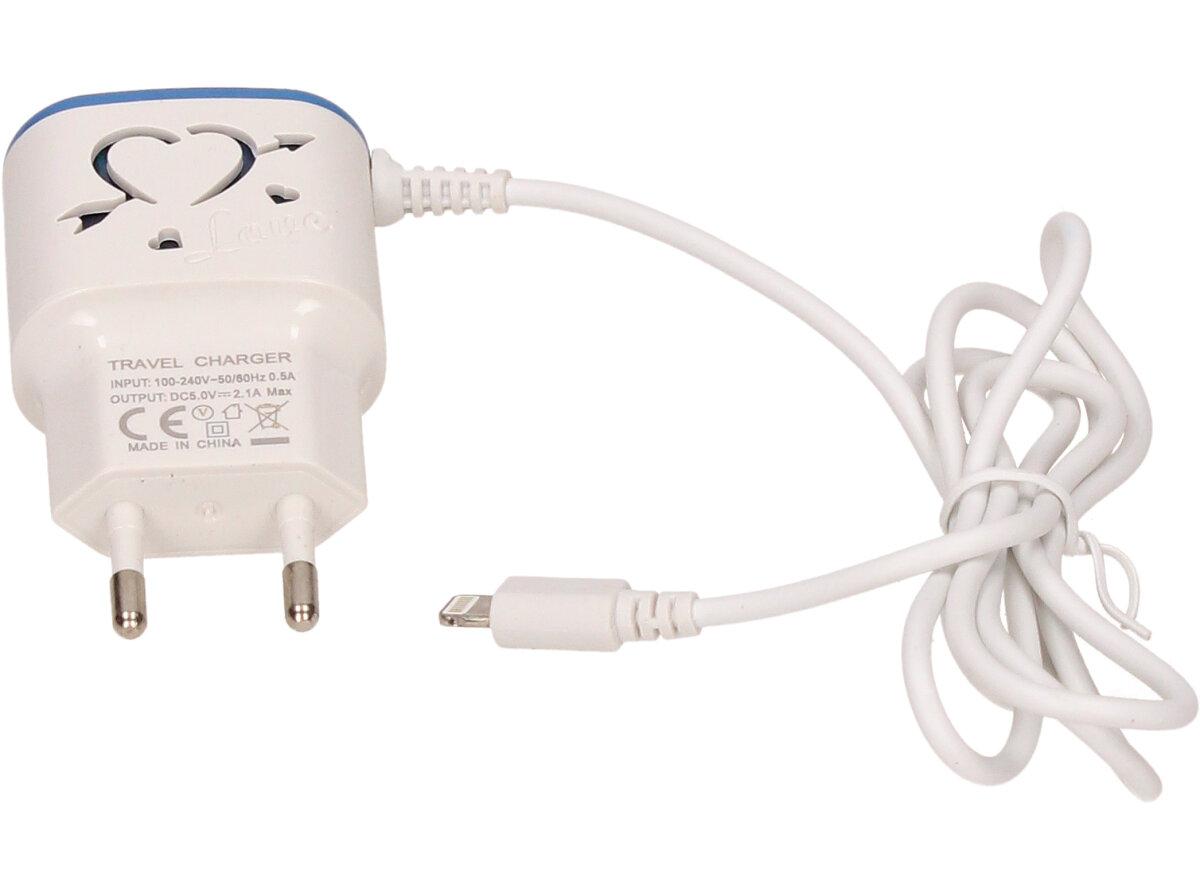 Praktická nabíječka pro telefony a zařízění Iphone s dlouhým 85cm kabelem a lampičkou, která při zastrčení do zásuvky svítí.
