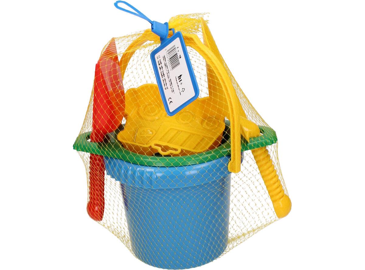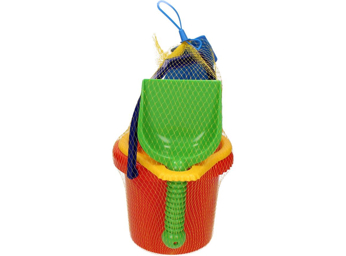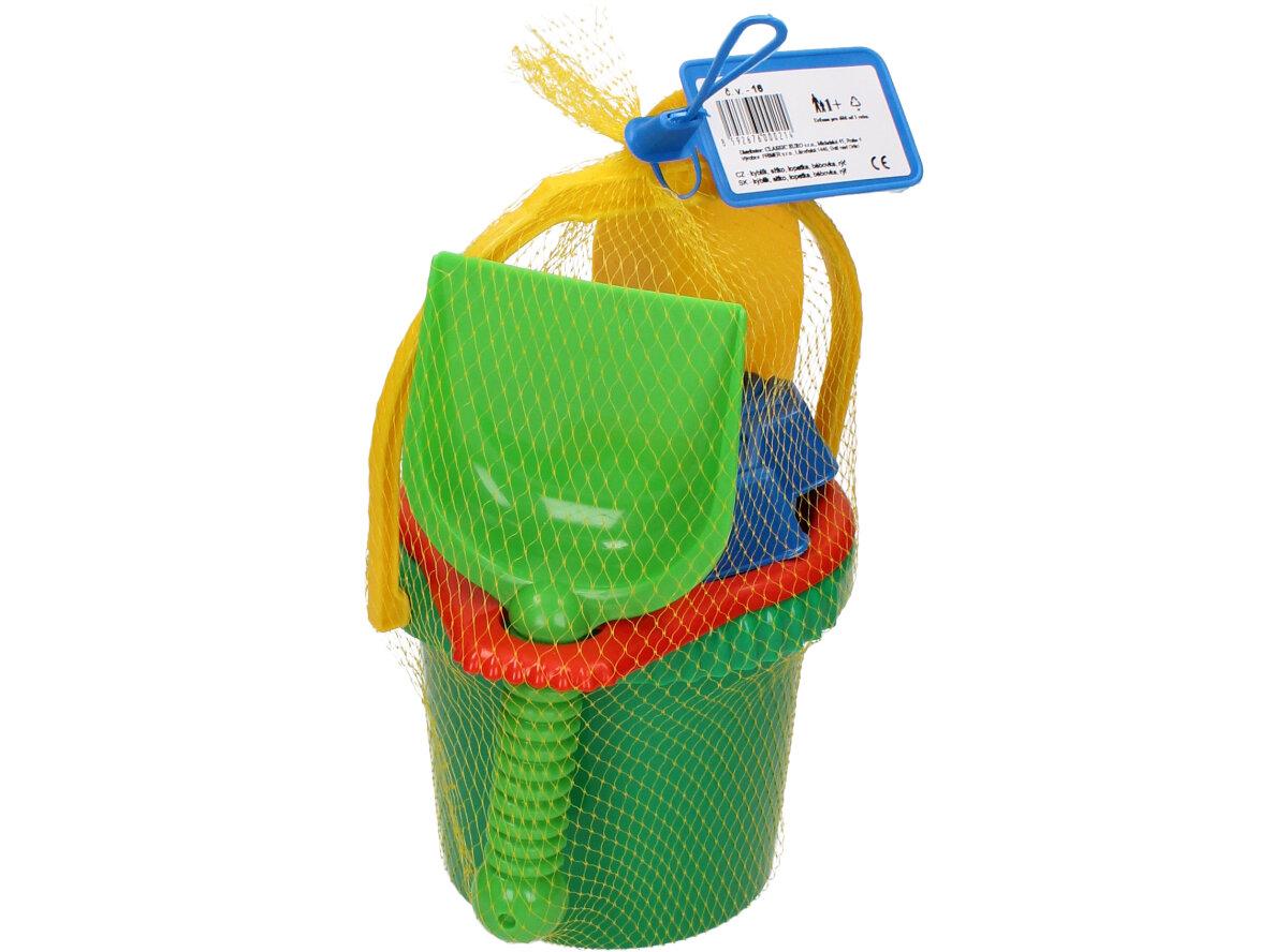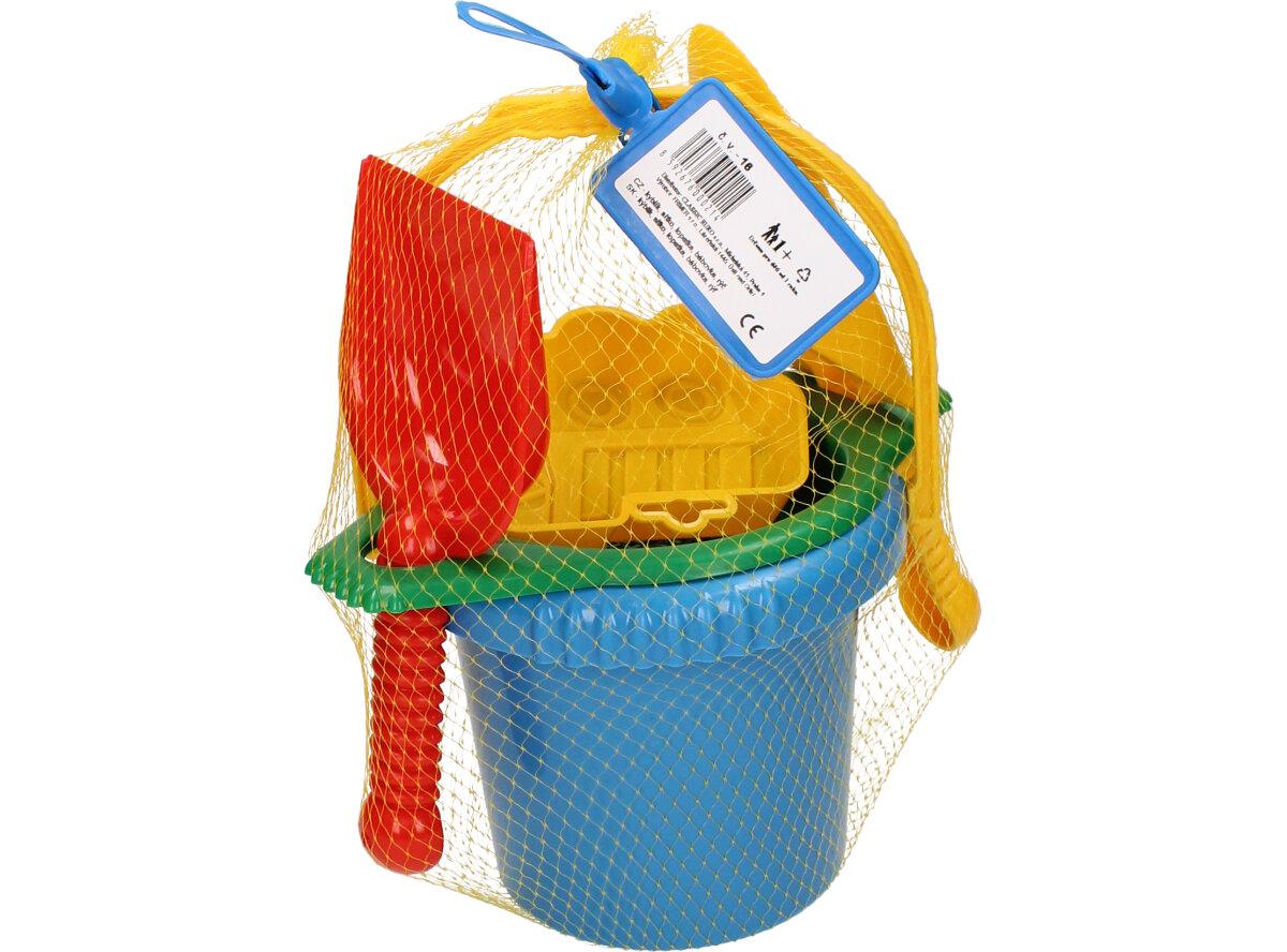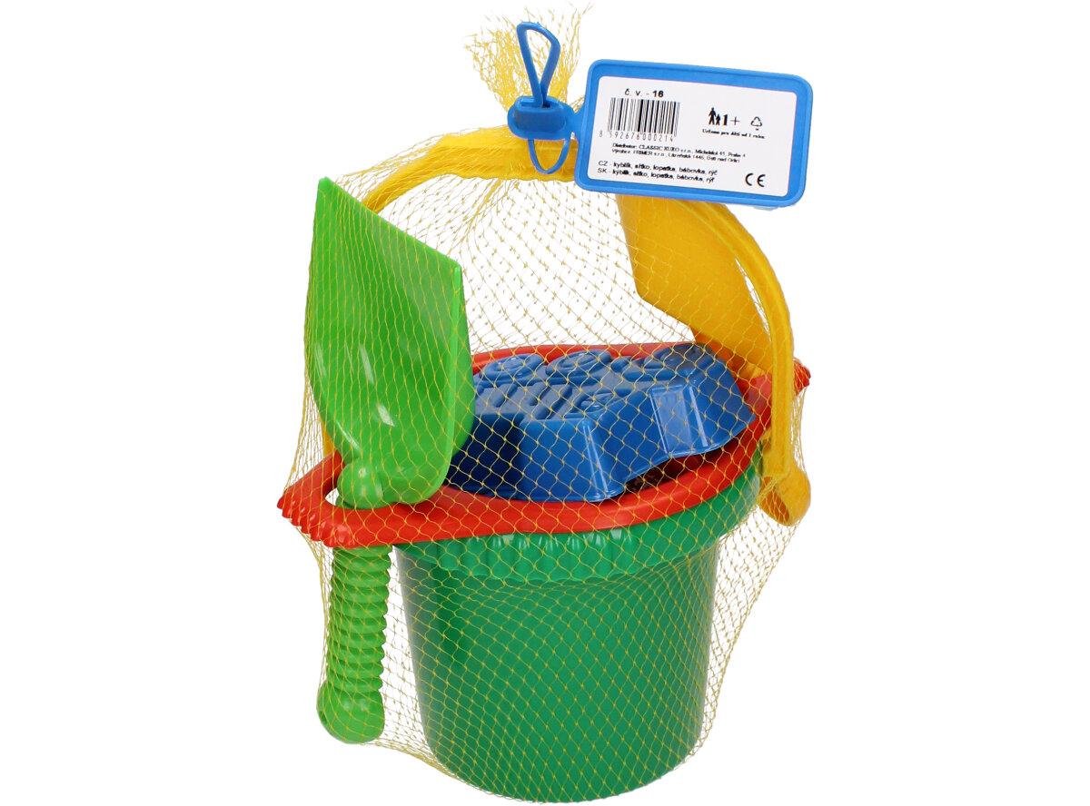 Souprava kyblík, sítko, lopatka, rýč, bábovka, sada hraček na písek potěší všechny milovníky pískových hrátek. Děti v sadě naleznou kyblík, sítko, lopatka, rýč, bábovka.