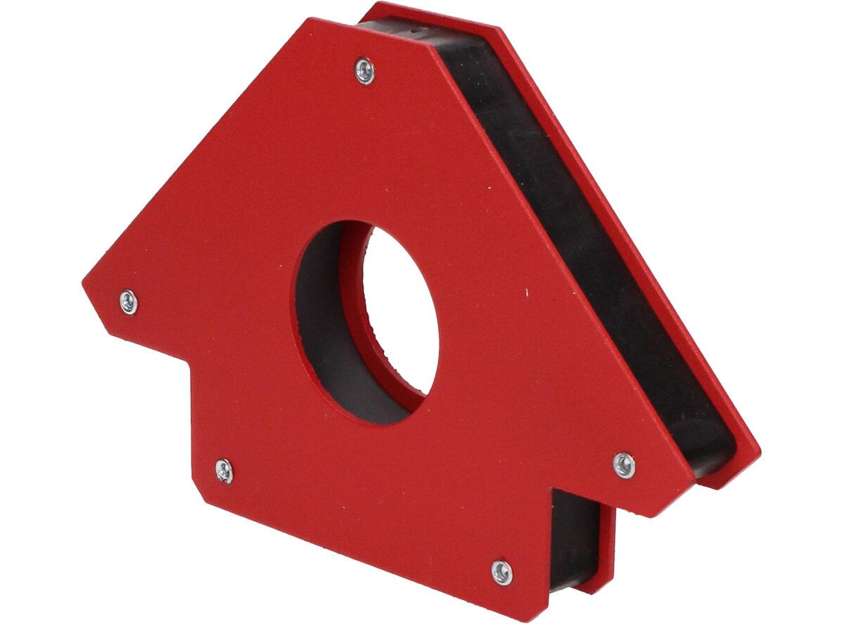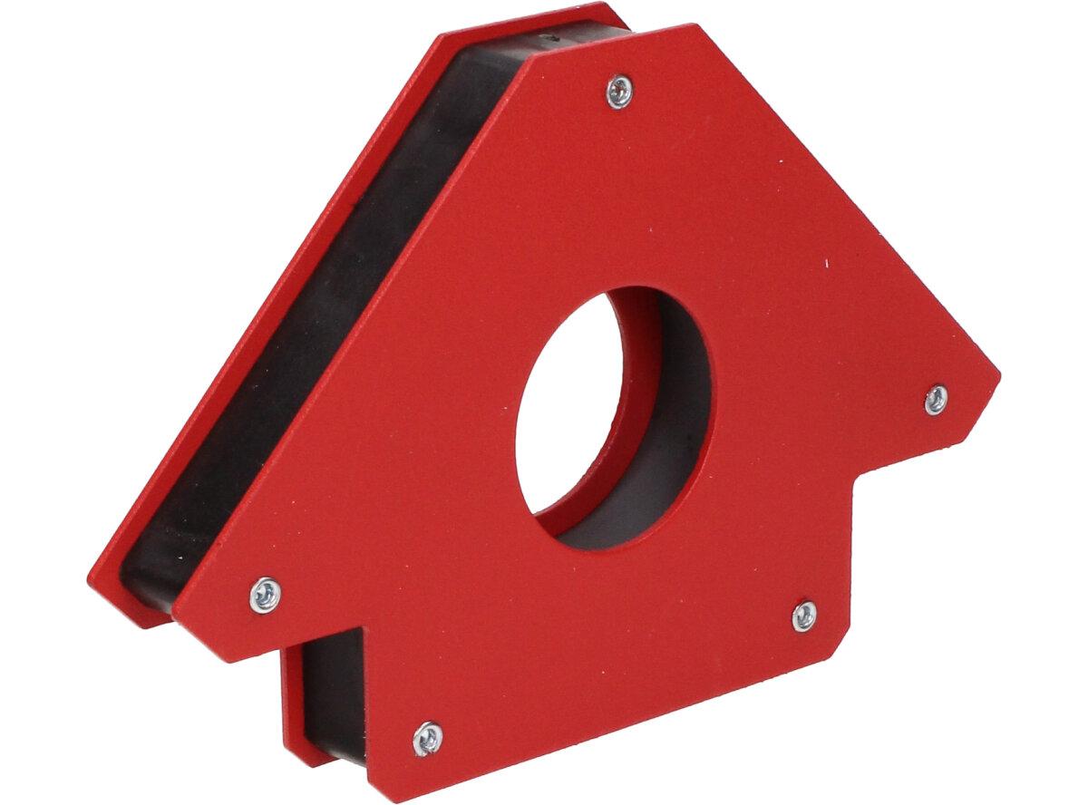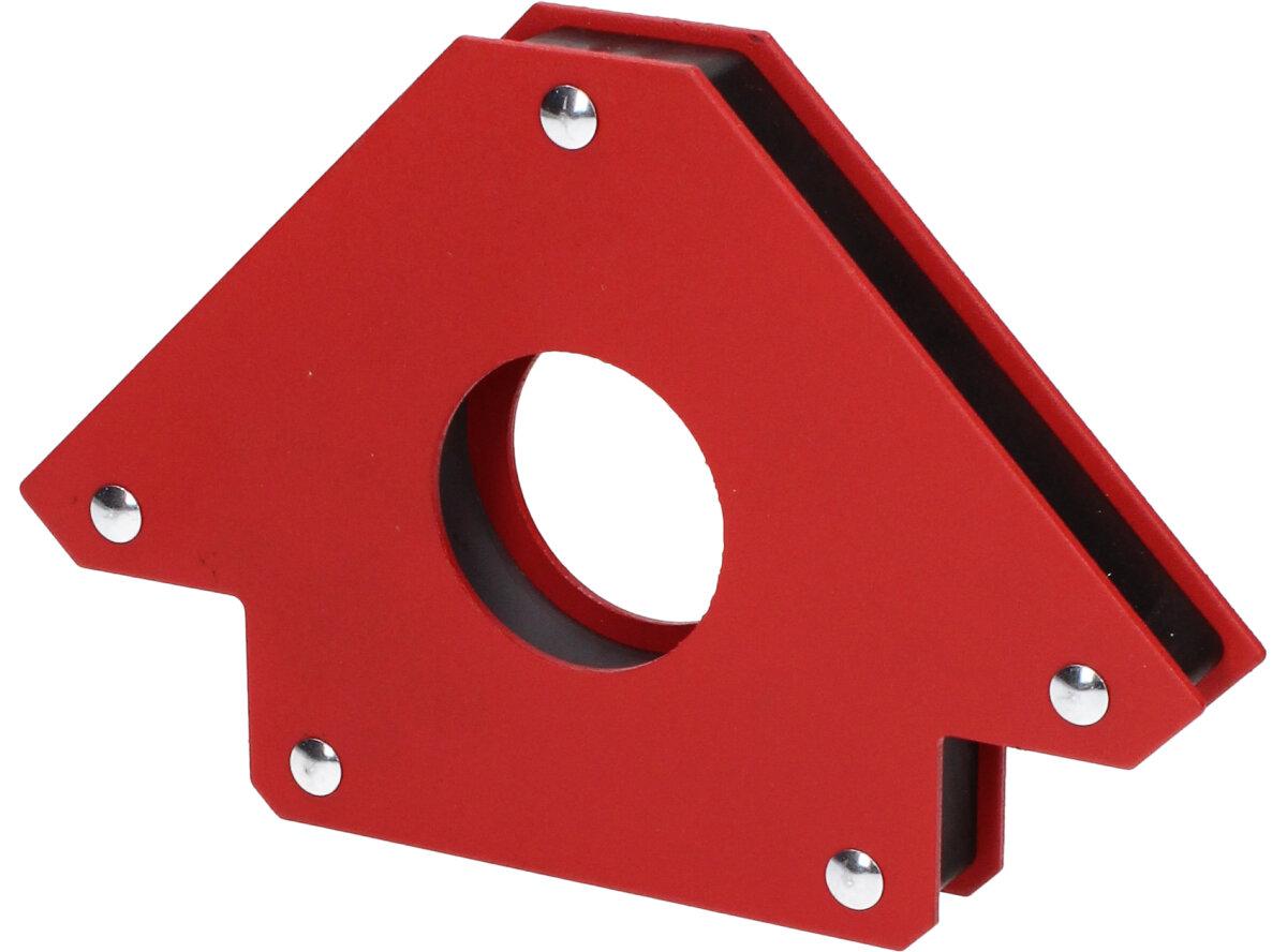 Úhlový magnet pro svařování 33 kg 5" se stane užitečným nástrojem při svařování železa, niklu a kobaltu. Silné magnety nahradí druhou osobu, která by vám přidržovala svařované části. Maximální nosnost každého magnetu je 33 kg. Můžete svařovat jakýkoliv magnetický kov pod úhlem 45°, 90° nebo 135°. Otvor v magnetu umožňuje jednoduché odstranění od opracováváných kovů.