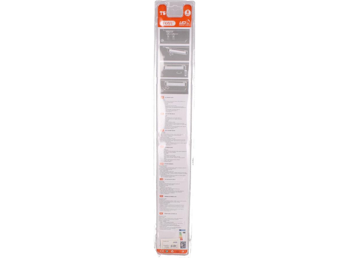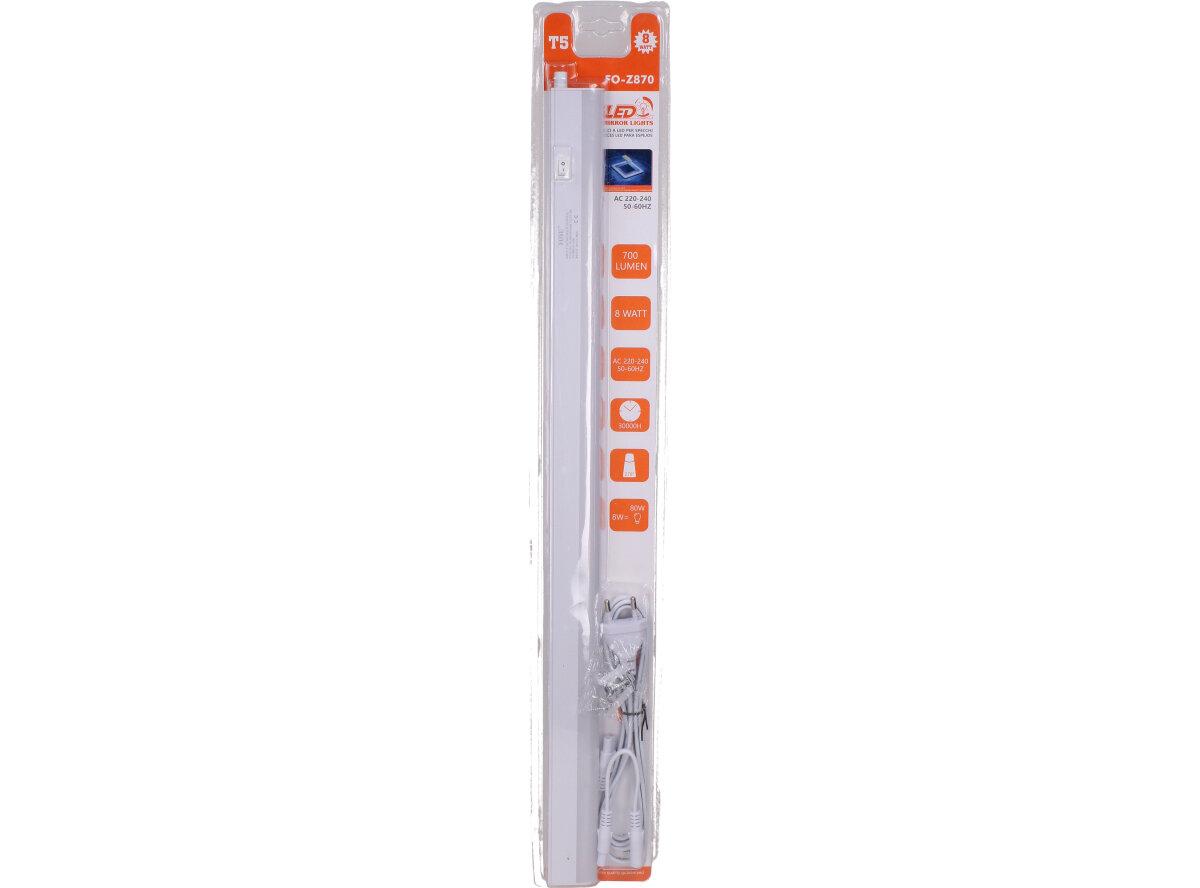 Zářivka komplet T5 - 8W Foyu FO-Z870 je kompletní zářivkové svítidlo s životností 30.000h opatřené vypínačem, kabelem, svítivostí 700 Lumenů, úhlem svitu 270 stupňů a výkonem 8W. Je zabudovaná do plastového krytu s ovladačem pro zapnutí a vypnutí a 130cm dlouhým kabelem pro připojení do zásuvky na 220V-240V. Ovládá se kolébkovým vypínačem. Své využití najde v kuchyni, prádelně, dílně, garáži, pracovně atd. Zářivka poskytuje mnoho jasného světla.