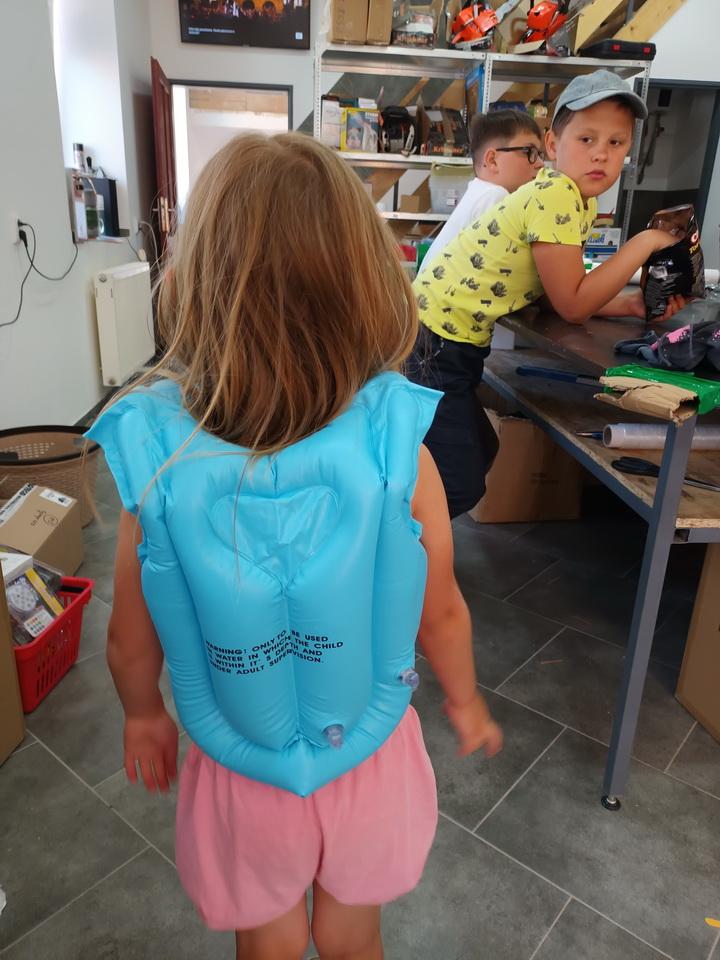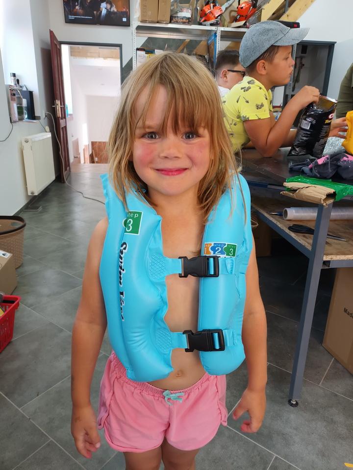 Dětská nafukovací plovací vesta Swim B je určena pro děti od 3 do 6 let. Díky třem nezávislým vzduchovým komorám a seřiditelným zapínacím přezkám zaručuje bezpečí při vodních radovánkách.
