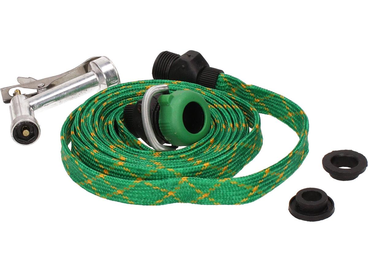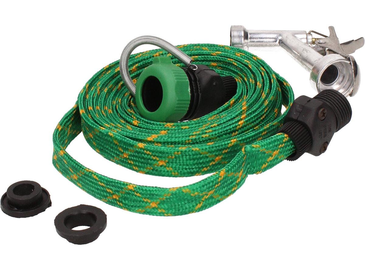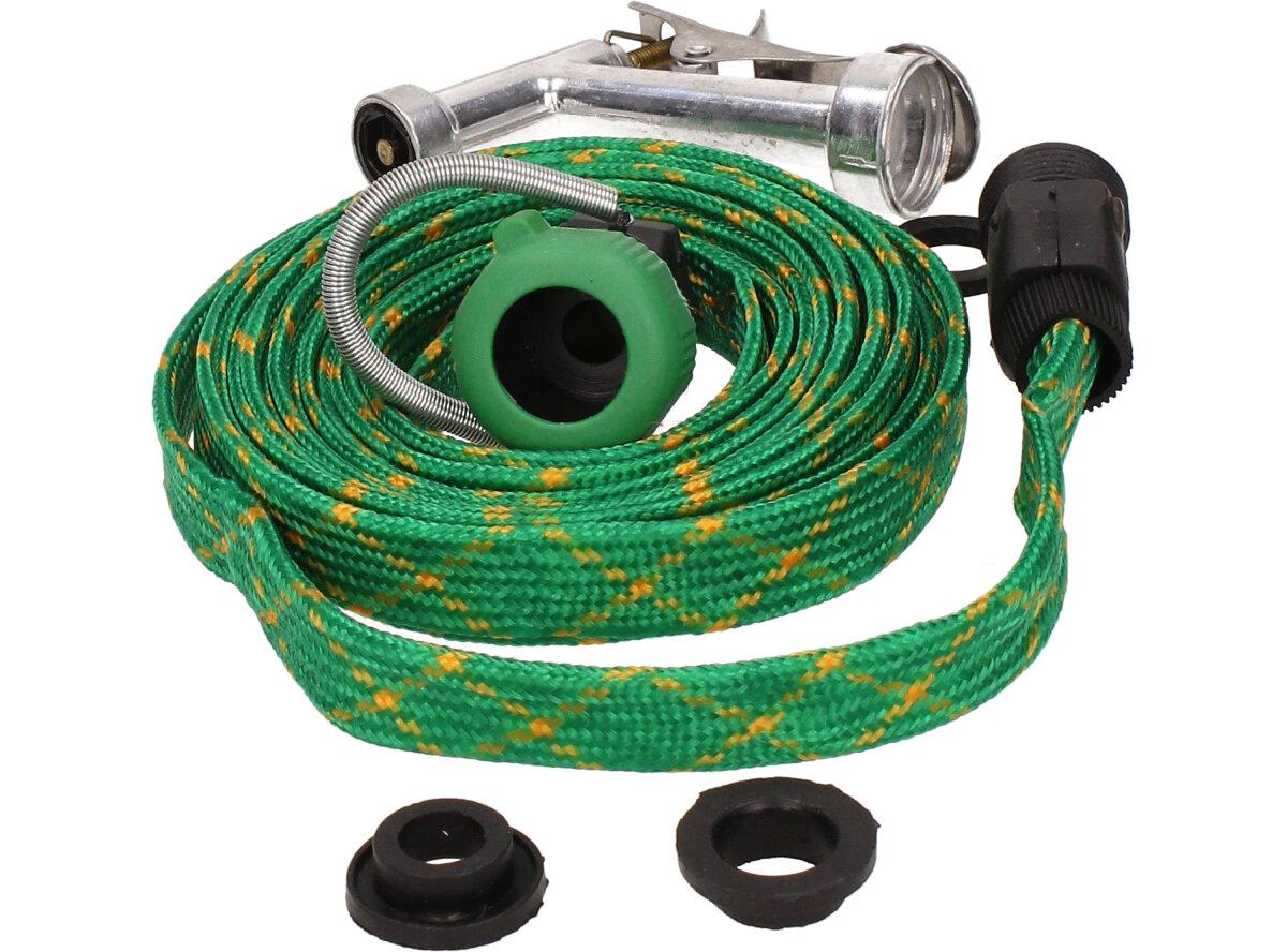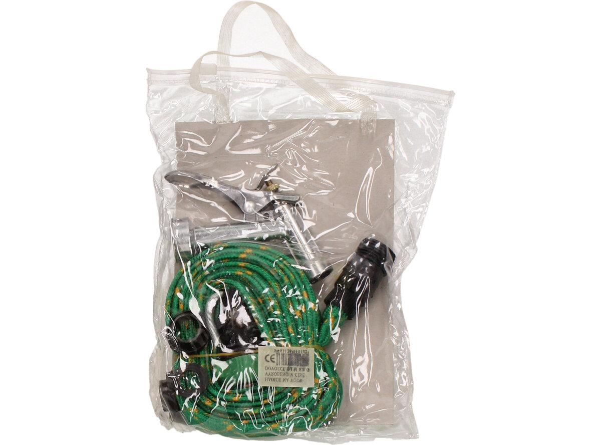 Hadice 5m tkaná s pistolí, nezabírá tolik místa, protkaná zelená.