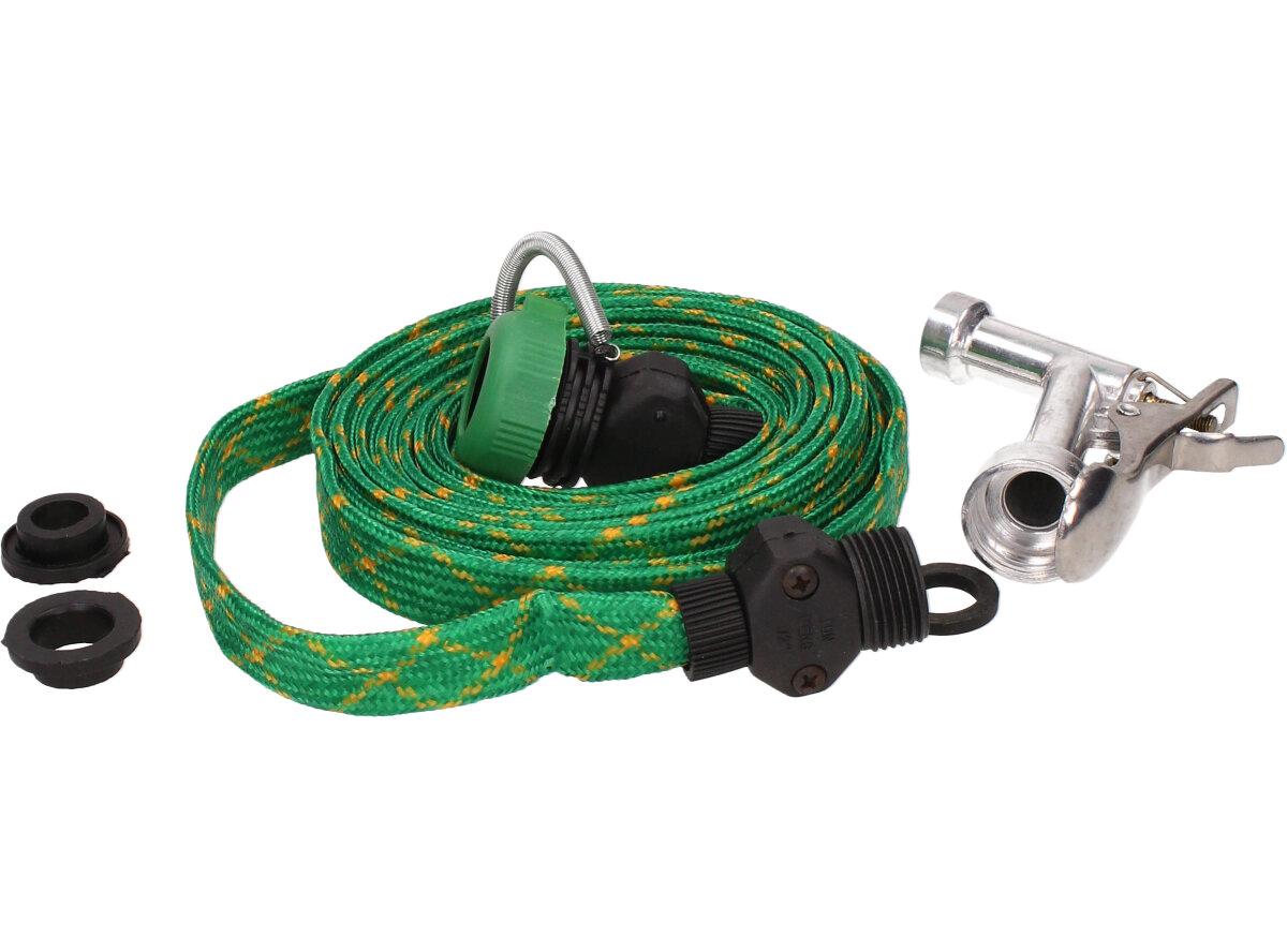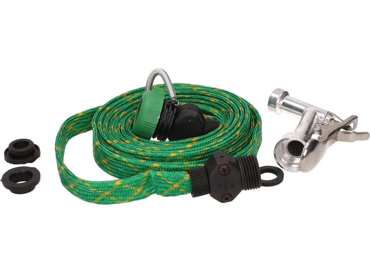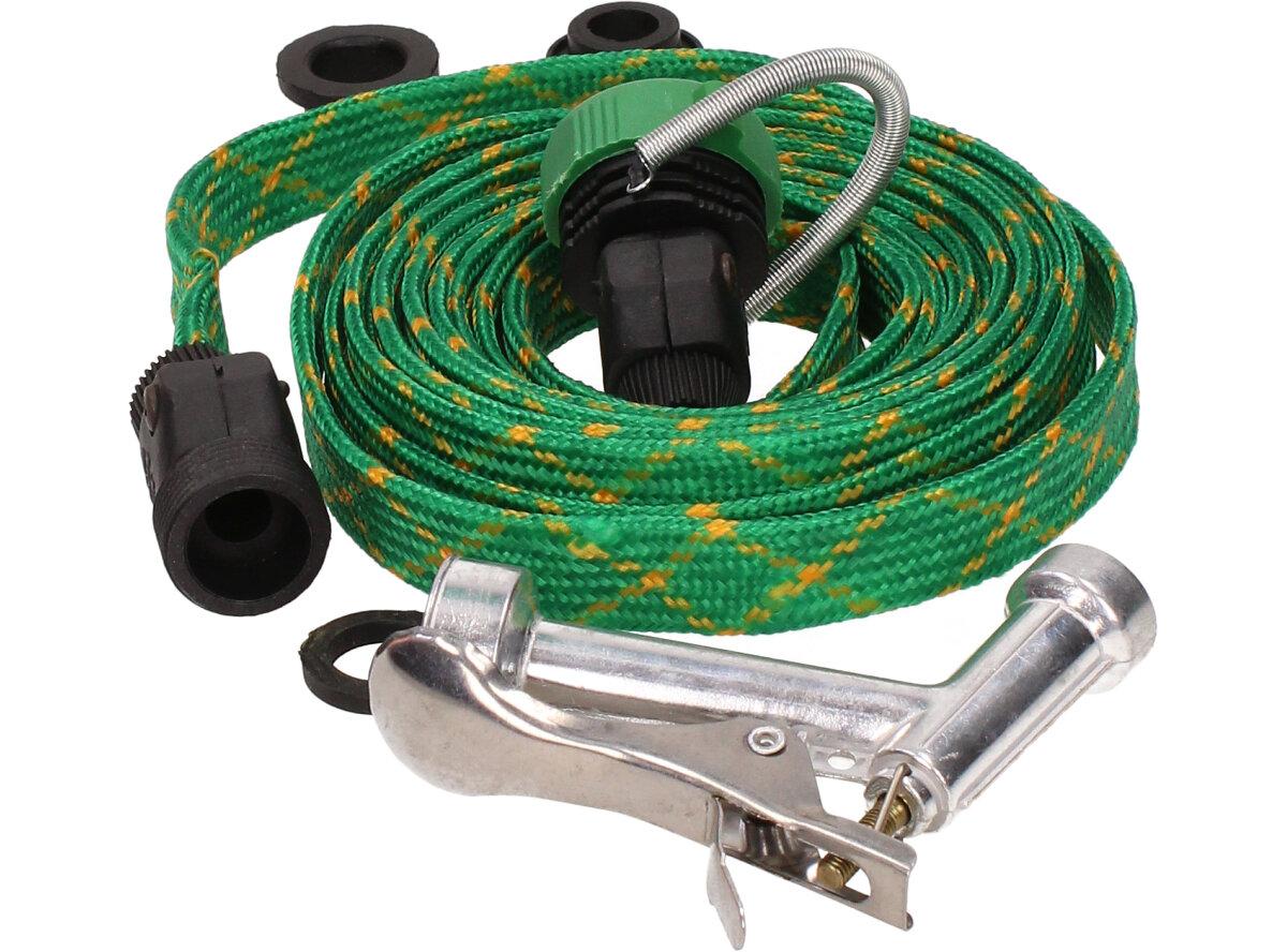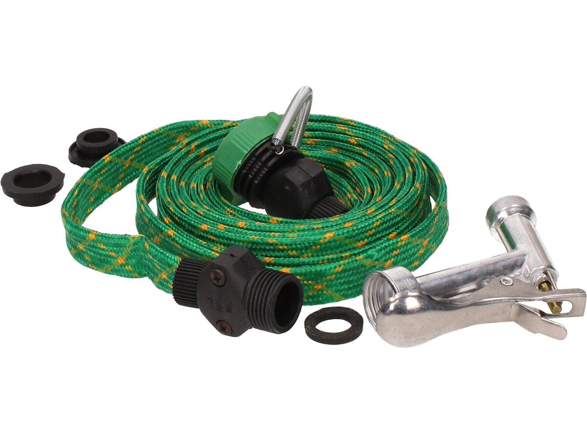 Hadice 5m tkaná s pistolí, nezabírá tolik místa, protkaná zelená.