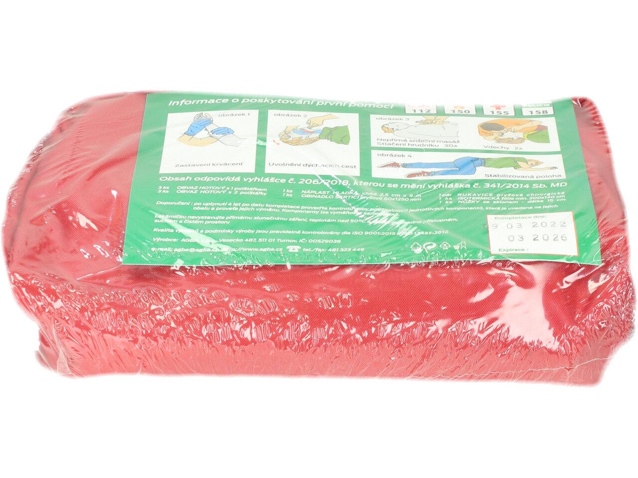Nezbytná a povinná součást výbavy každého automobilu. Zkontrolujte si obsah a expiraci Vaší autolékárničky - mohou na tom záviset lidské životy! Tato lékárnička plně odpovídá vyhlášce MDČR č.341/2014 Sb., příloze č. 12, část B, bod 11, velikost č. I