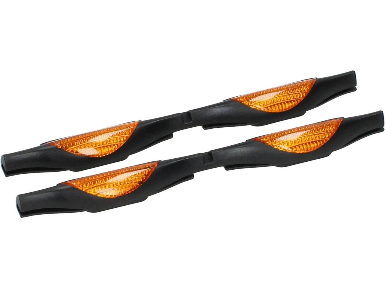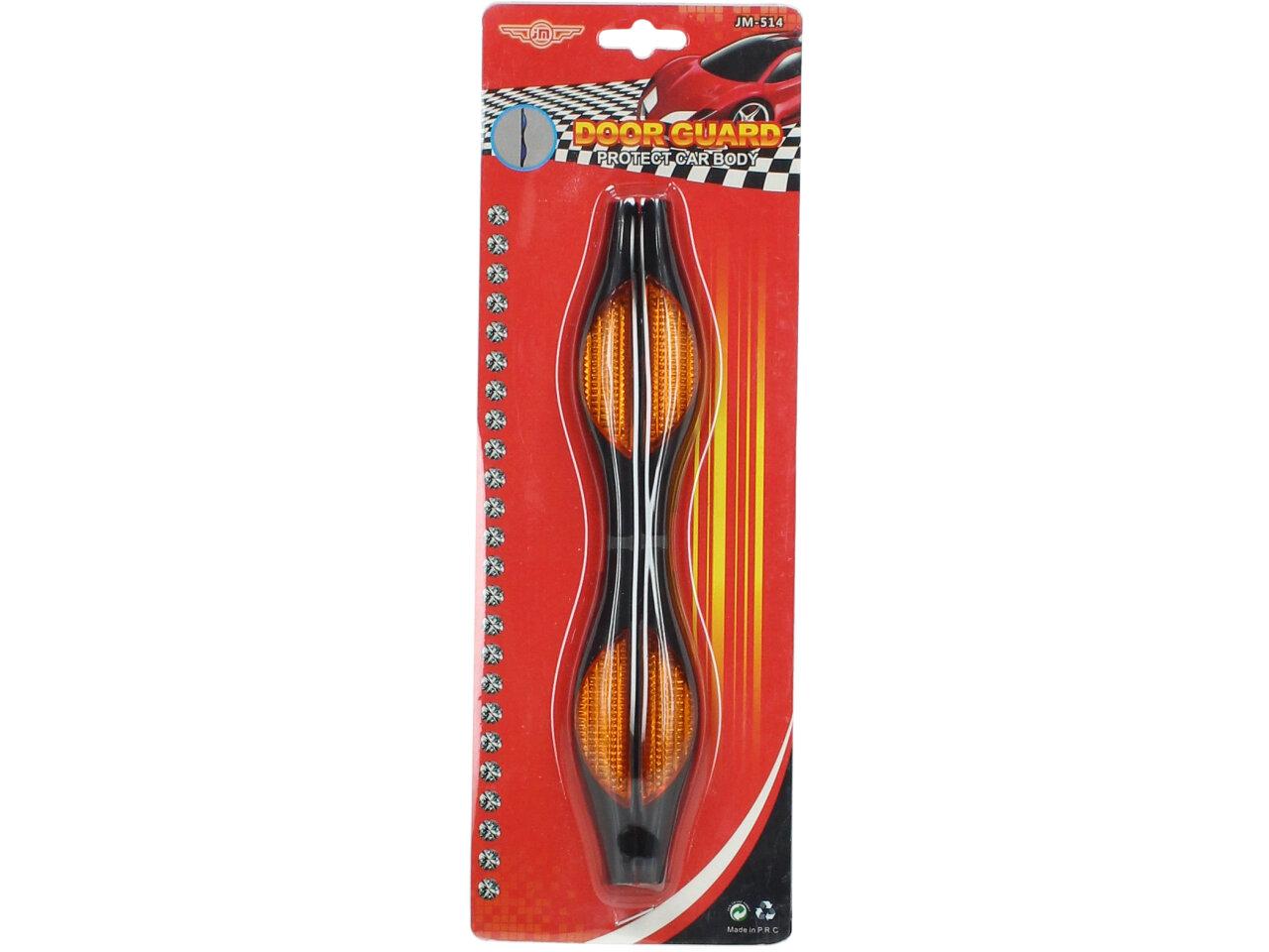 Chraniče dveří s odrazkou 2ks jsou tvarovány z plastu, prostřední část je zůžena a díky tomu je možné chránič ohýbat. K připevnění není třeba žádného nářadí, chrániče se pouze nasadí na hranu dveří vozidel, lze nasadit i na tvarovaná místa. Určeno k nalepení na okraj dveří automobilu.