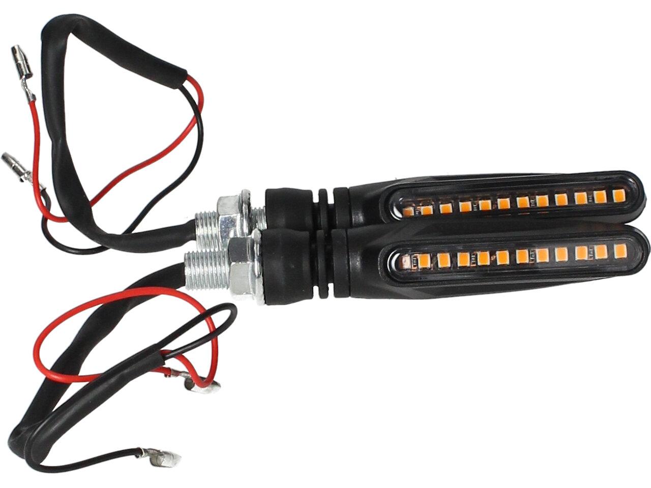 LED směrová světla na motorku jsou vyrobena z kvalitního a pevného plastu, opatřena průhledným sklíčkem. 12 jasných LED diod vám zajistí vysoký stupeň svítivosti, tudíž Vás na silnici nikdo nepřehlédne odbočovat. Instalace se provádí pomocí matic. Nemusíte se bát, že se vám brzy rozbijí, tato směrová světla jsou otřesuvzdorná a odolná proti vodě.