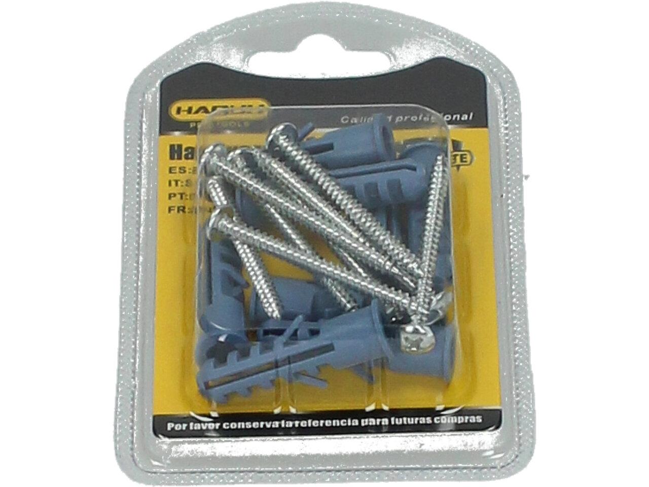 šroub s hmoždinkou 8 kusů za bezkonkurenční cenu. Šrouby o délce 5cm a průměru křížové hlavičky 7mm. V balení je 8 kusů a jsou vhodné na vrtání do zdi.
