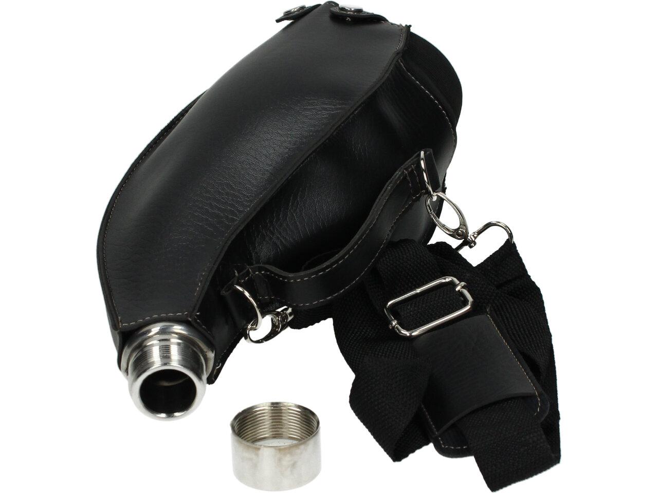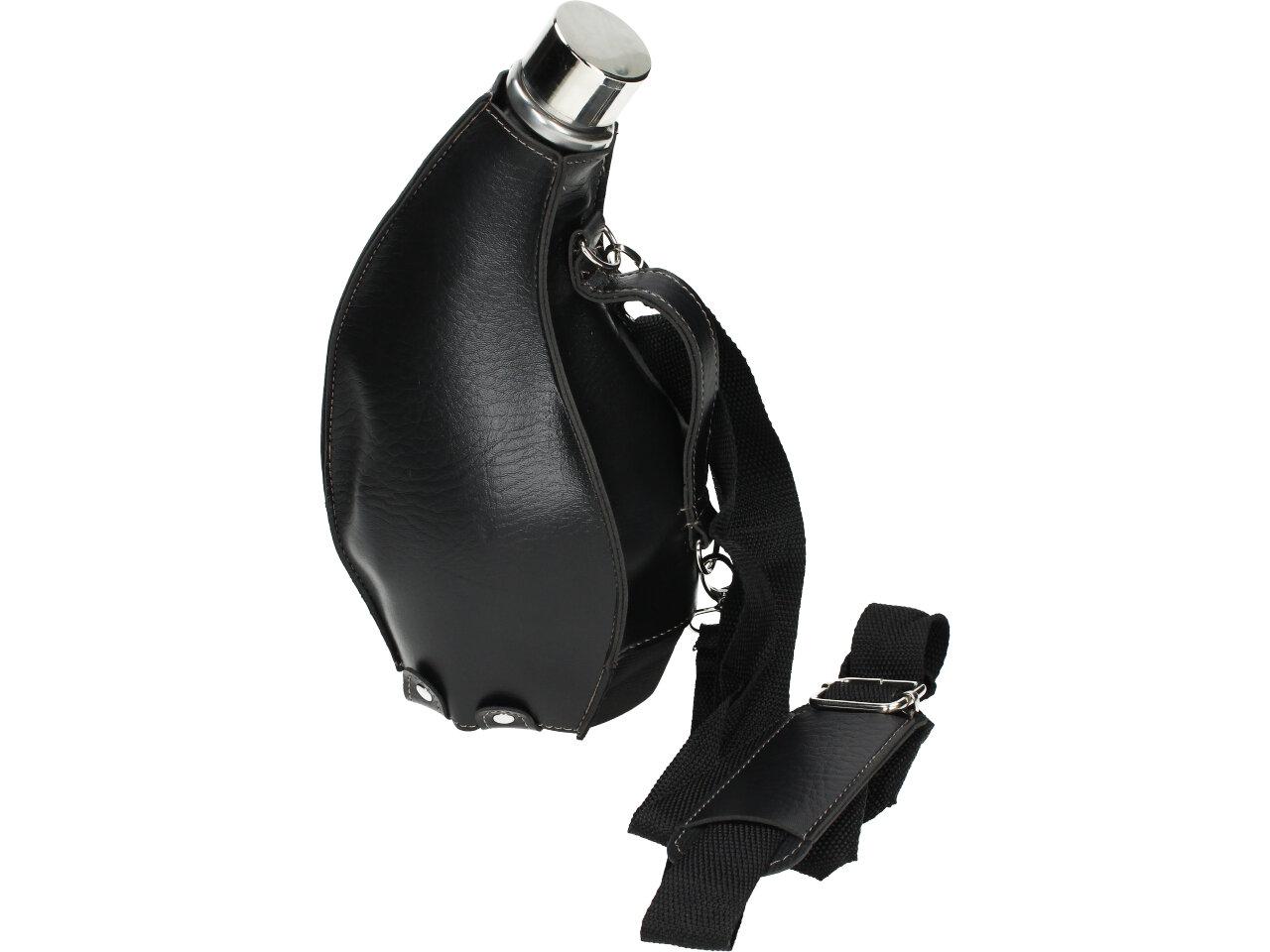Kožená placatka přes rameno je ideální na delší cesty, na tůry, čundry, festivaly i pochody. Placatka je chráněna v pevném koženém pouzdře, které je vybaveno dlouhým uchem přes rameno. Vyrobeno z nerezového pevného kvalitního materiálu a na vrchu placatky je klasické šroubovací víčko, aby se vám vás oblíbený nápoj nevylil. Uchová na delší dobu i teplý čaj, svařák, grog, atd.