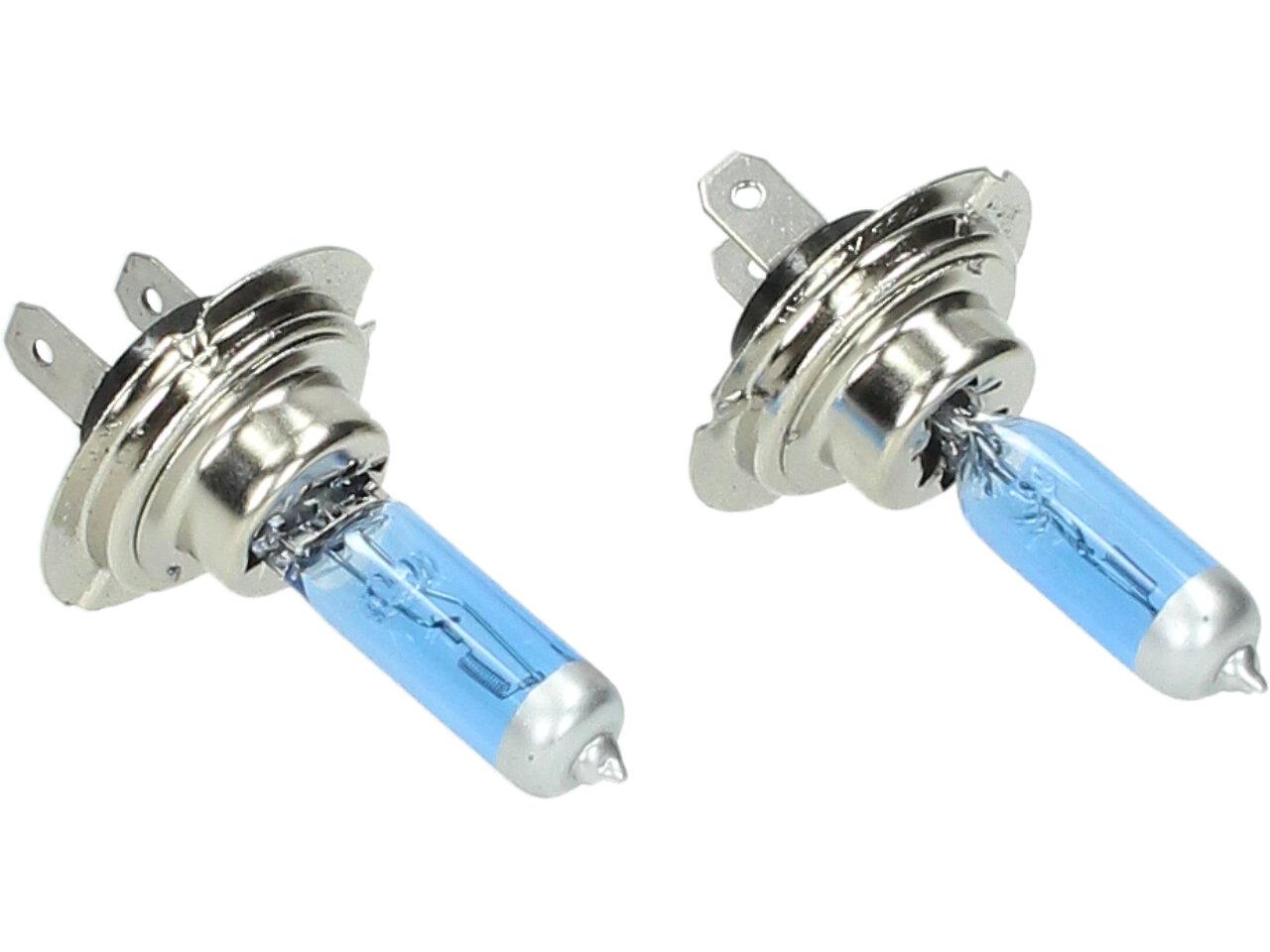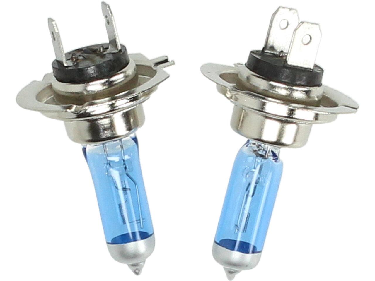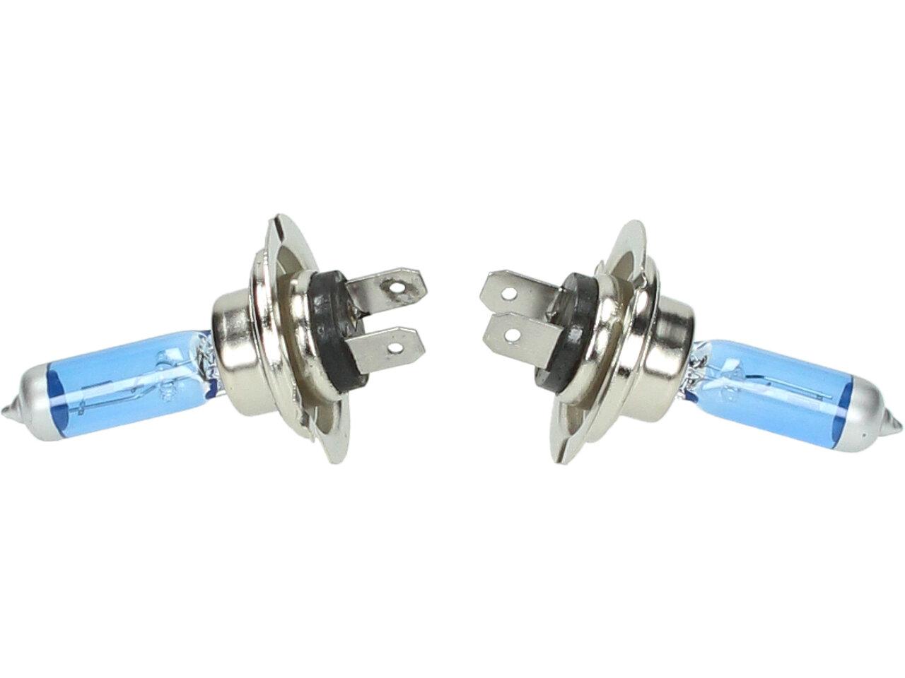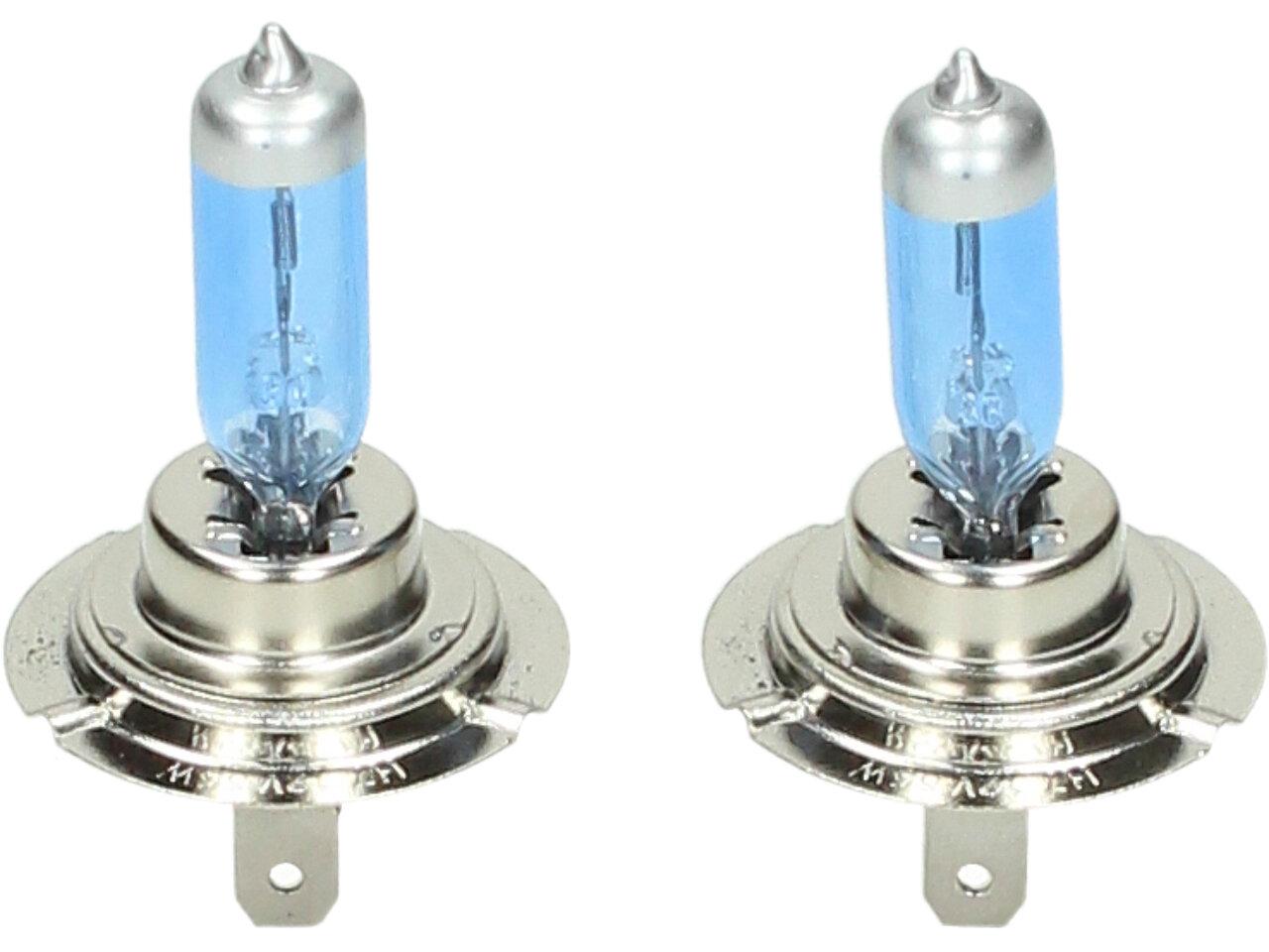 Velice odolná H7 žárovka s barvou světla 6000K (studená bílá) sada 2 kusy do světlometu do auta na 12V jako náhrada za klasickou nevýkonou žárovku H7.
