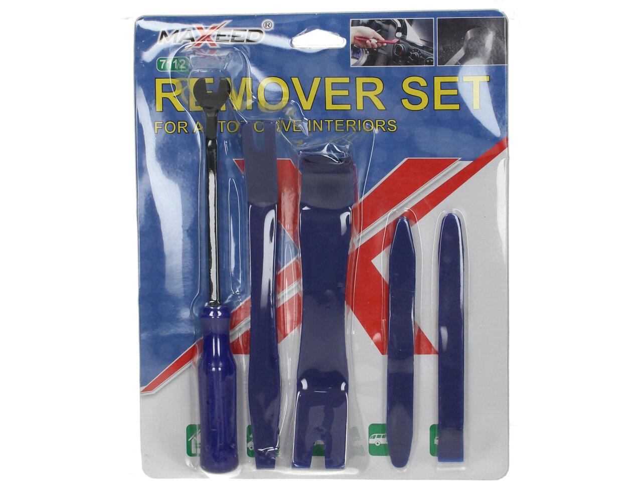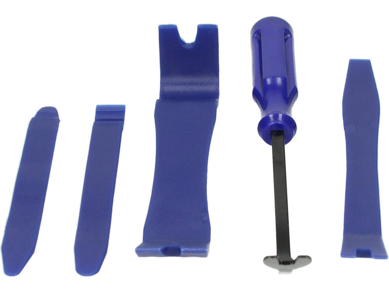 Nástroje v sadě zahrnují plastové páčidlo, univerzální háček, široký plastový nástroj, úzký plastový nástroj a drátěný háček. Plastové nástroje jsou navrženy tak, aby se snadno vkládaly a vyjímaly různé díly interiéru vozidla, jako jsou dveře, palubní deska, strop a další.