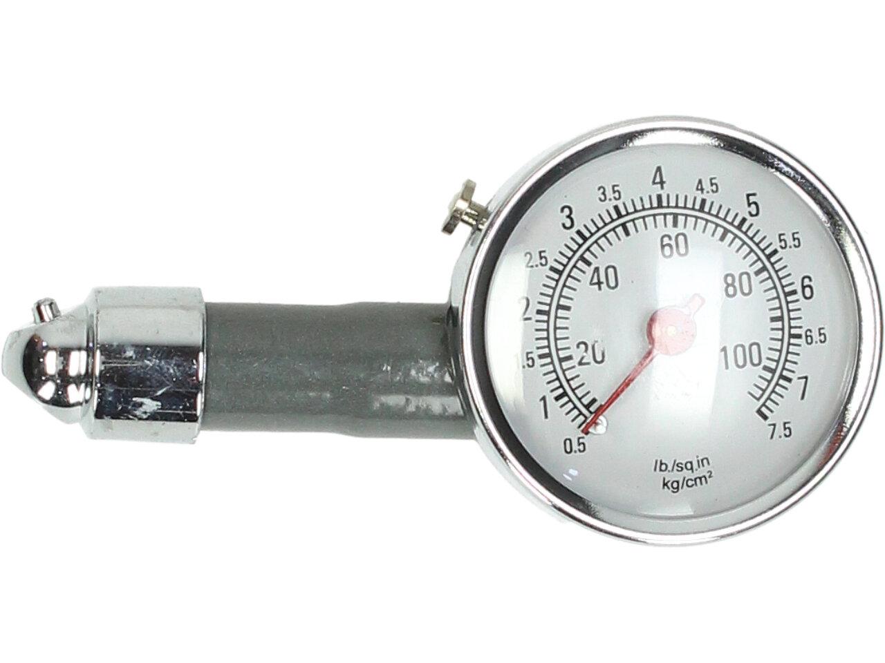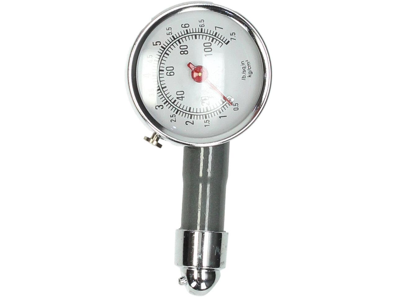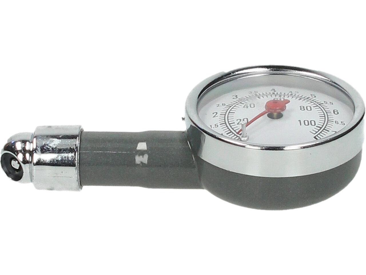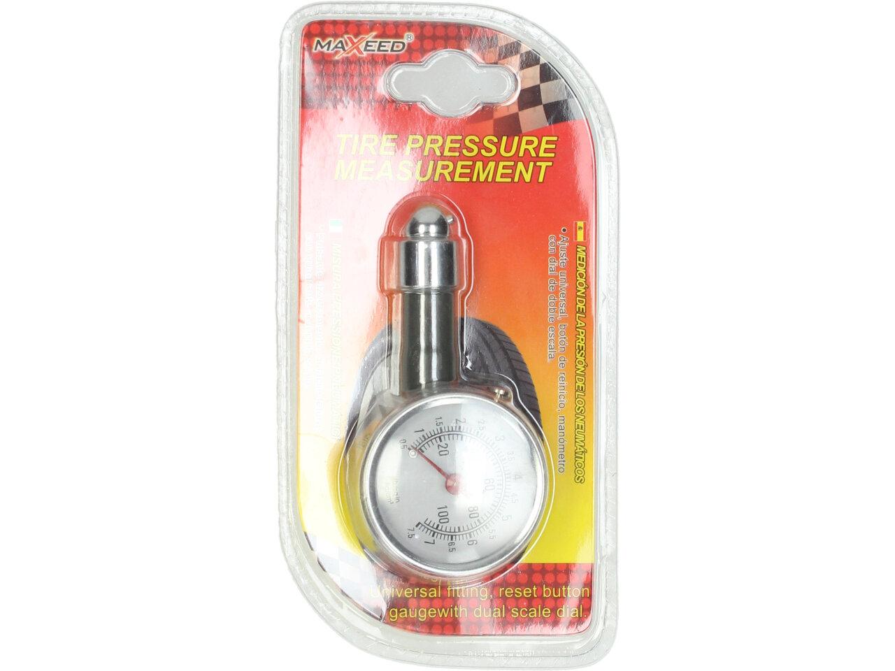 Měřič tlaku v pneumatikách, díky tomuto testru můžete mít svá kola pod kontrolou. Tester obsahuje resetovací tlačítko, měřidlo s dvojitou stupnicí, univerzální kování. Barva šedivá