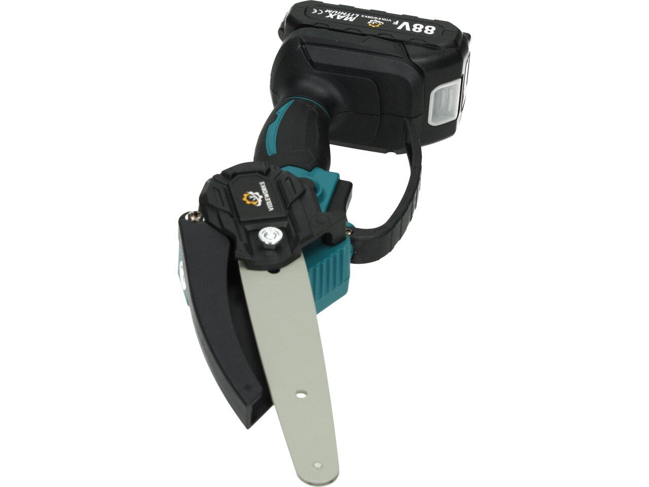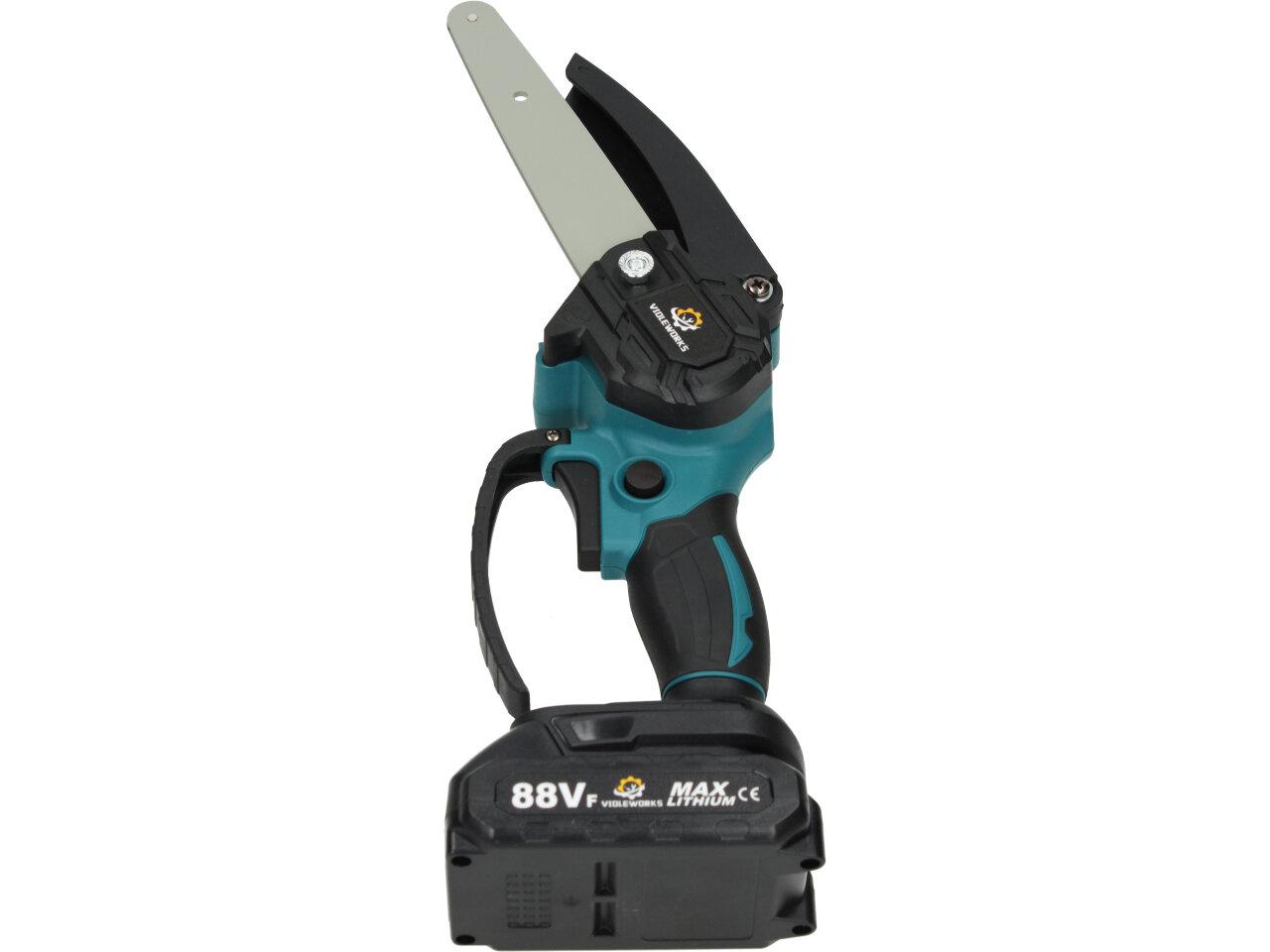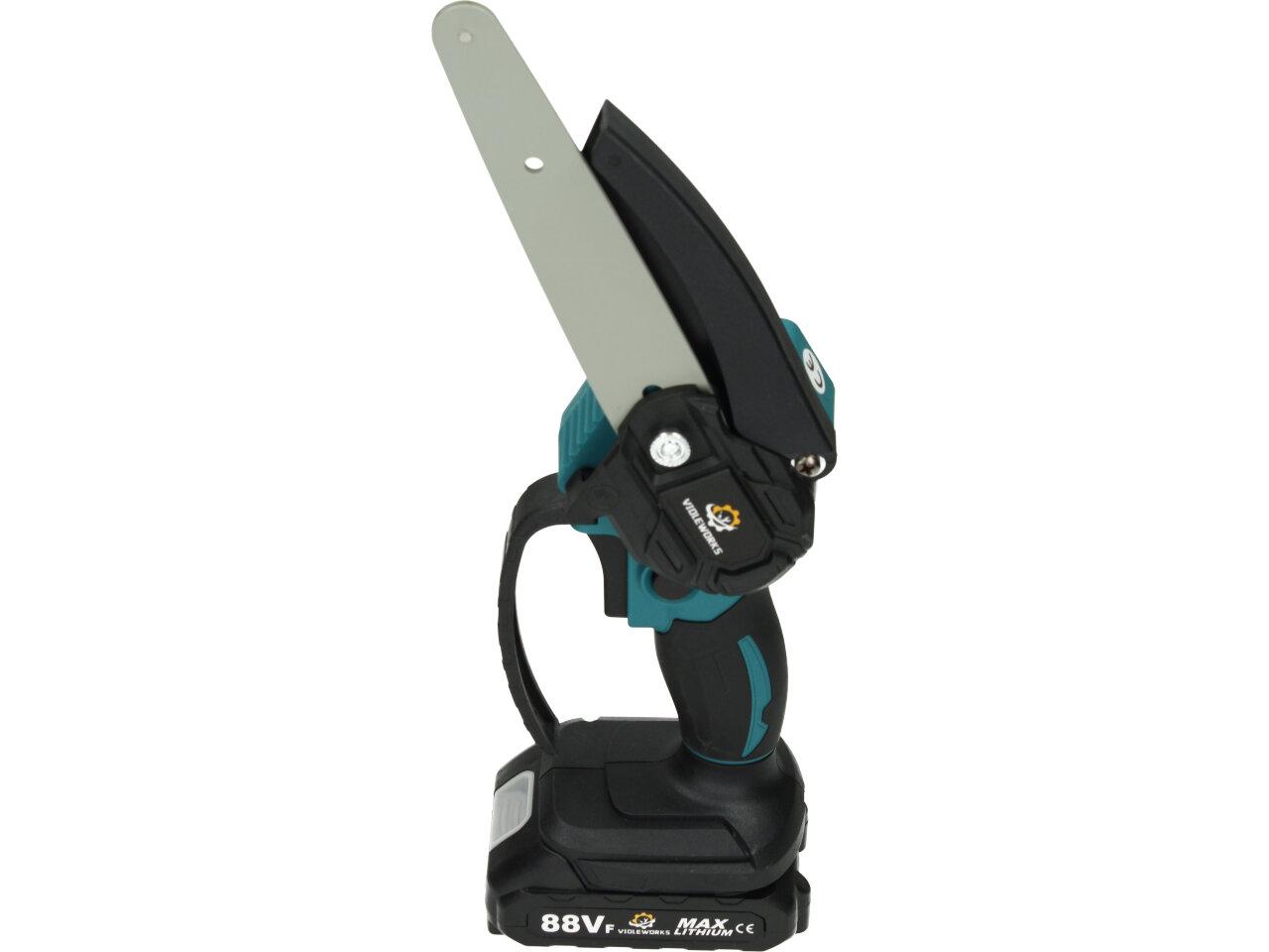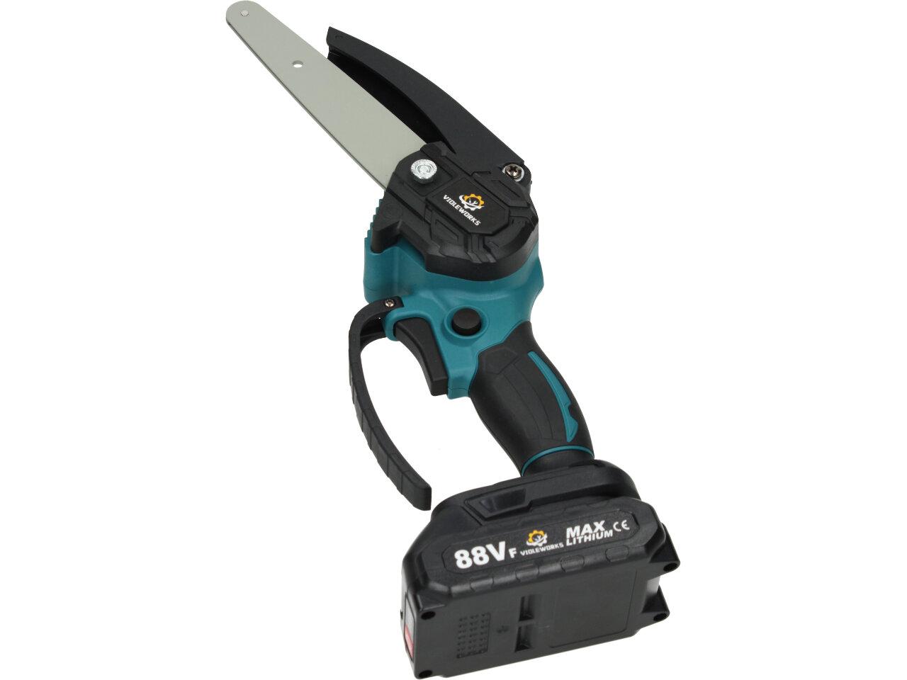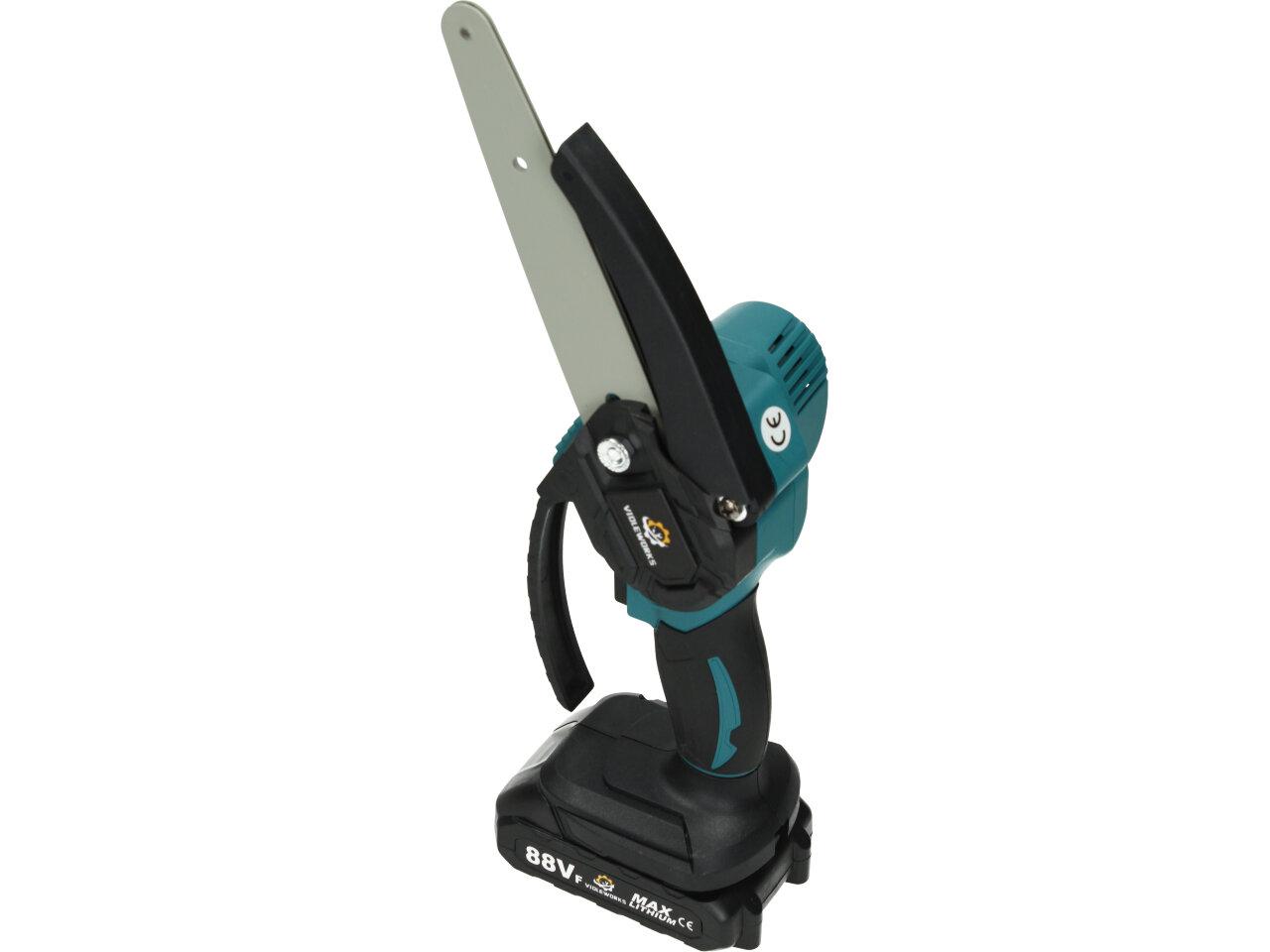 Elektrická ruční pila je vhodná pro zahradnictví a proto by neměla chybět v žádné kůlně. Snadno s ní prořezáte keře, tůje, odříznete větev a mnoho dalšího. Je zde přidané také tlačítko bezpečnostního zámku, které zabrání nechtěnému spuštění. Tato pila se vyznačuje vysokou tvrdostí řetězu a nízkou hmotností, díky které ji můžete používat pouze jednou rukou. Měděný motor zajistí silný výkon a nižší spotřebu energie, to následně zvyšuje efektivitu Vaší práce. Ergonomicky tvarovaná rukojeť poskytne pohodlné a pevné uchopení. Můžete si také nastavit i rychlost řezání, klasickým stlačováním spíneče. Spolu s pilou obdržíte v balení 2x Li-ionovou baterii 7 500 mAh