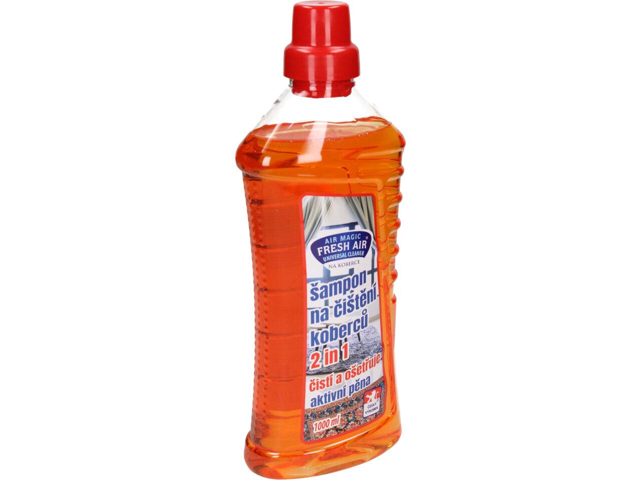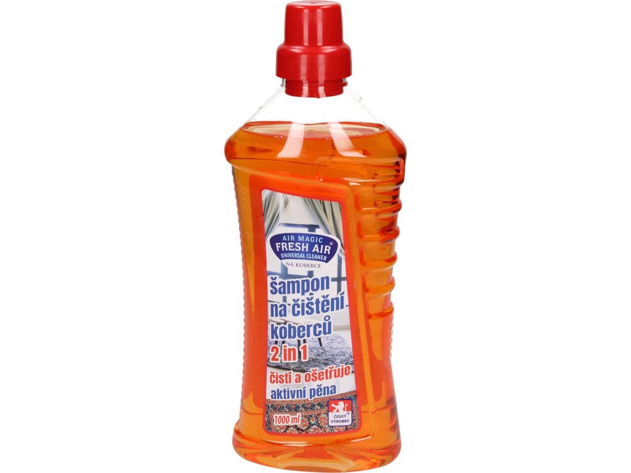 FRESH AIR Šampon s aktivní pěnou na koberce 2v1 1 L je prostředek pro ruční čištění koberců s antistatickým účinkem. Účinně odstaní skvrny a nečistoty z koberců, podlah, potahů a čalounění. Aktivní pěna proniká do vláken a spolehlivě odstraní všechny nečistoty. Specialní přísada zabraňuje opětovnému zašpinění.