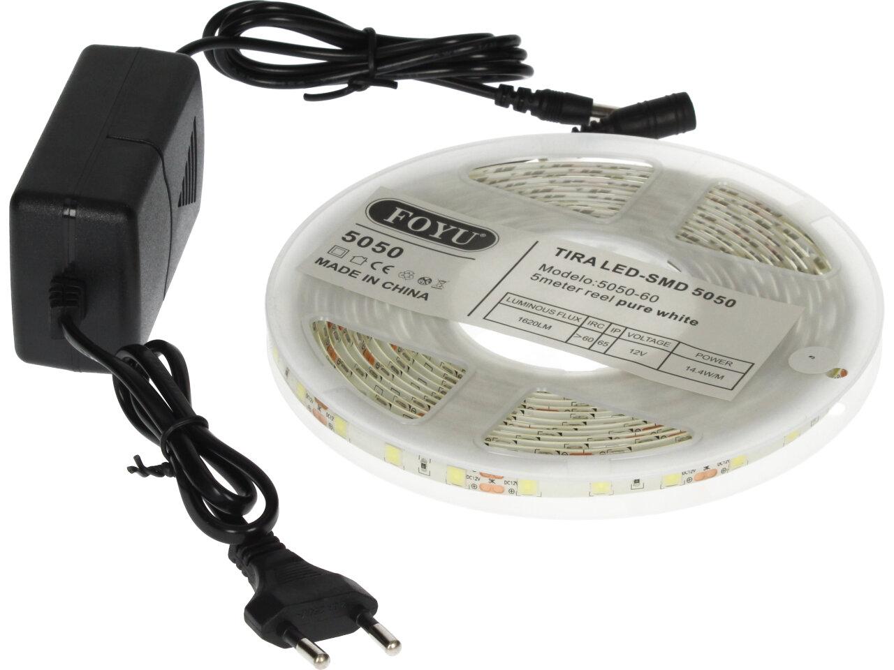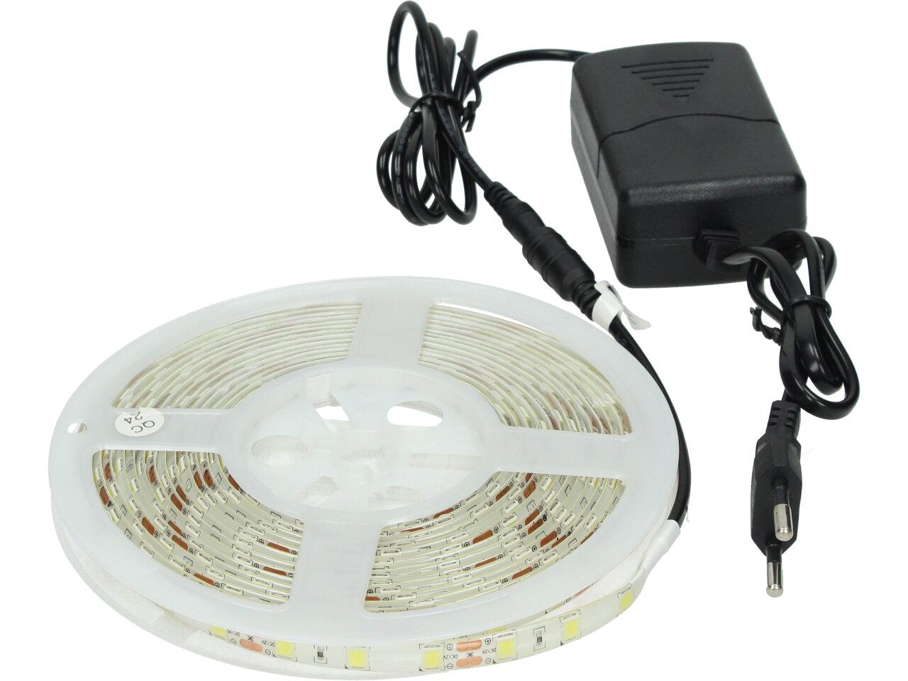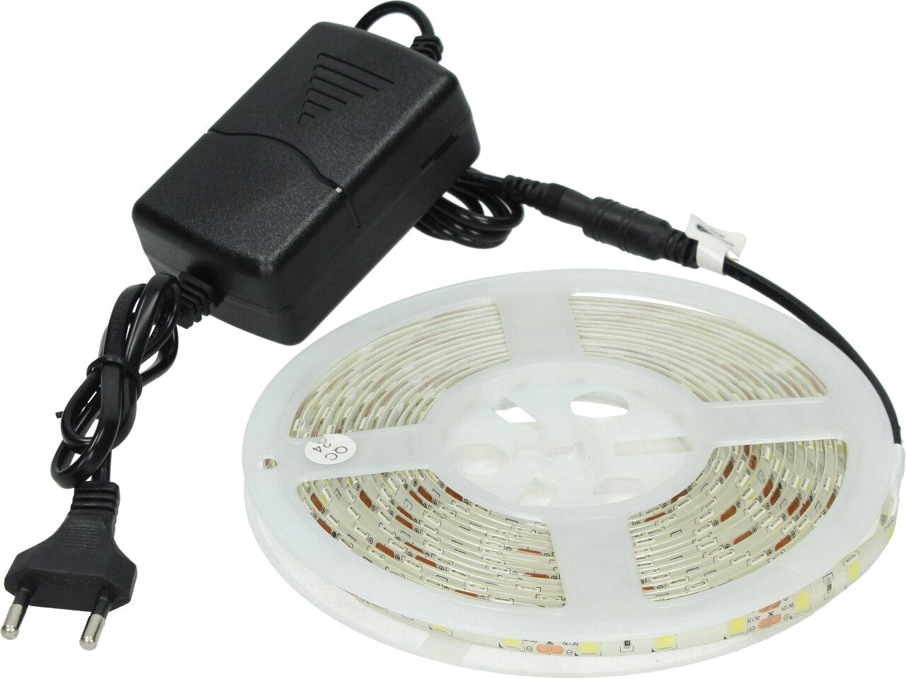 Bílý LED Pásek o délce 5m včetně adaptéru s oboustrannou lepící páskou a čipy 35…