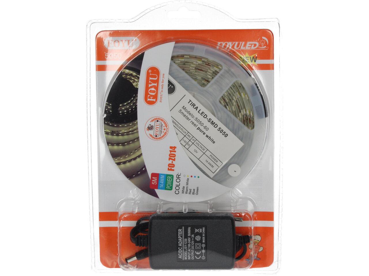 LED svítící pásek FOYU - FO-Z014 5050, je 5 metrů dlouhý svítící pásek, který rozjasní vaše okolí, barva je purpurově bílá a obsahuje 1620 LM. Pásek lze využít jak doma tak i venku, obsahují voděodolost IP 65.