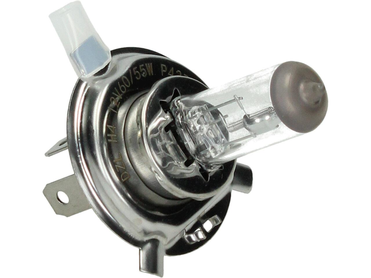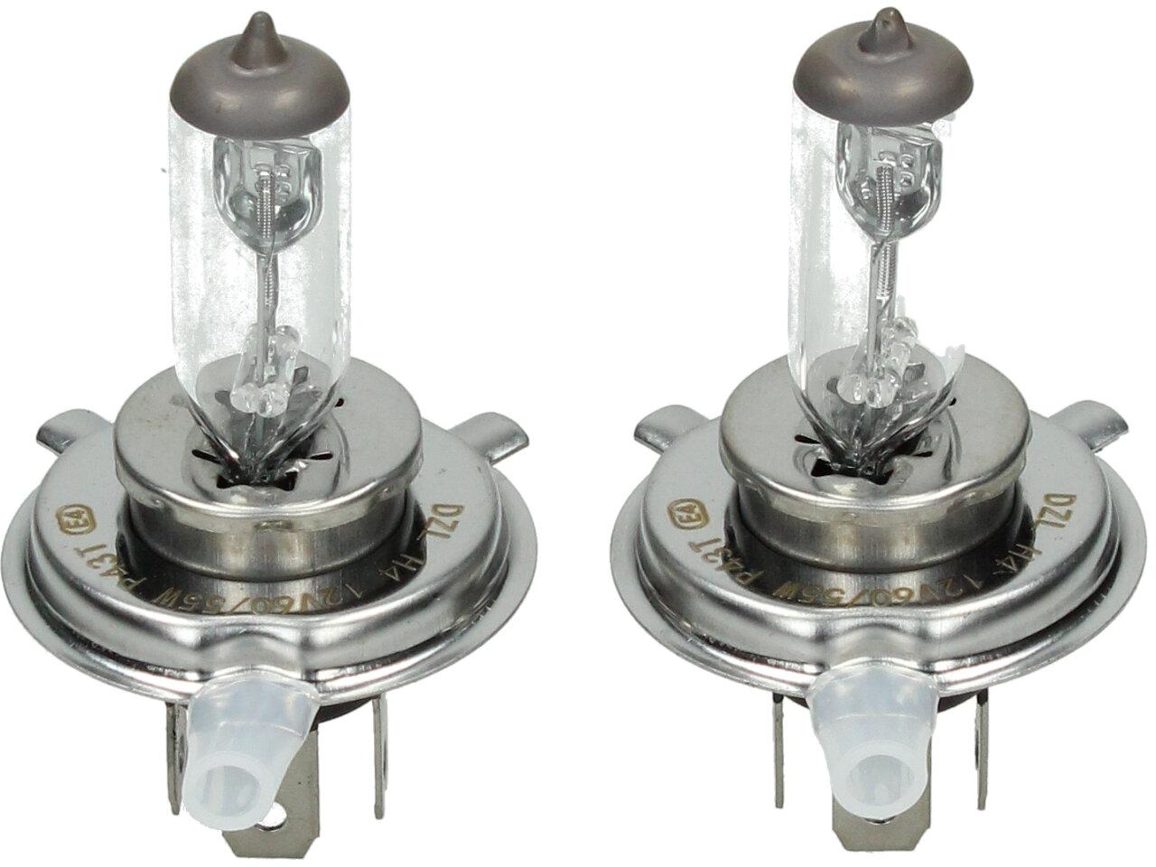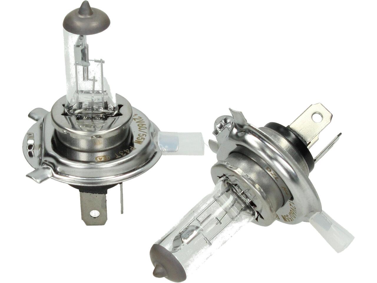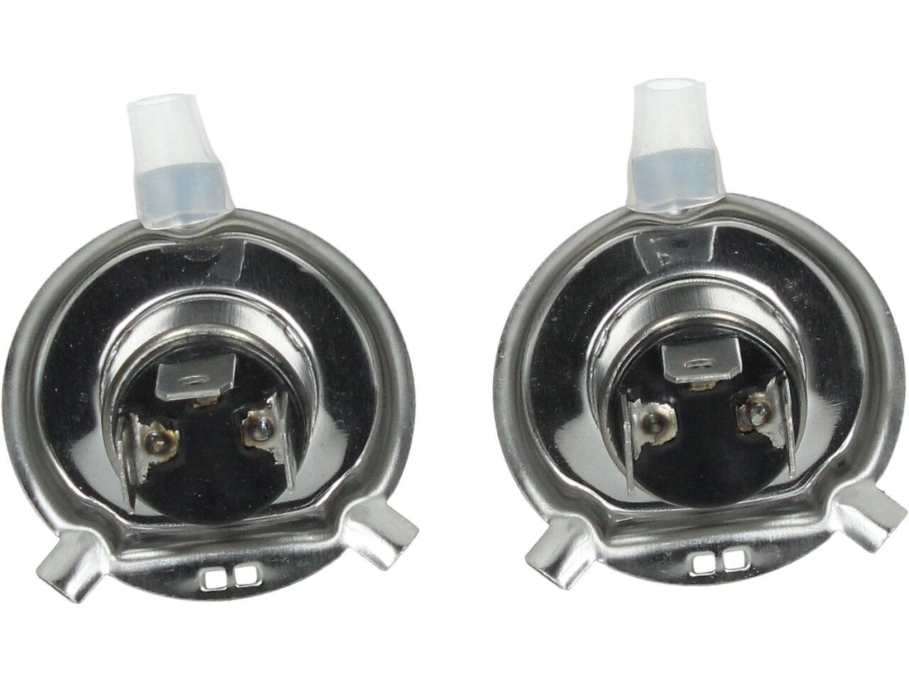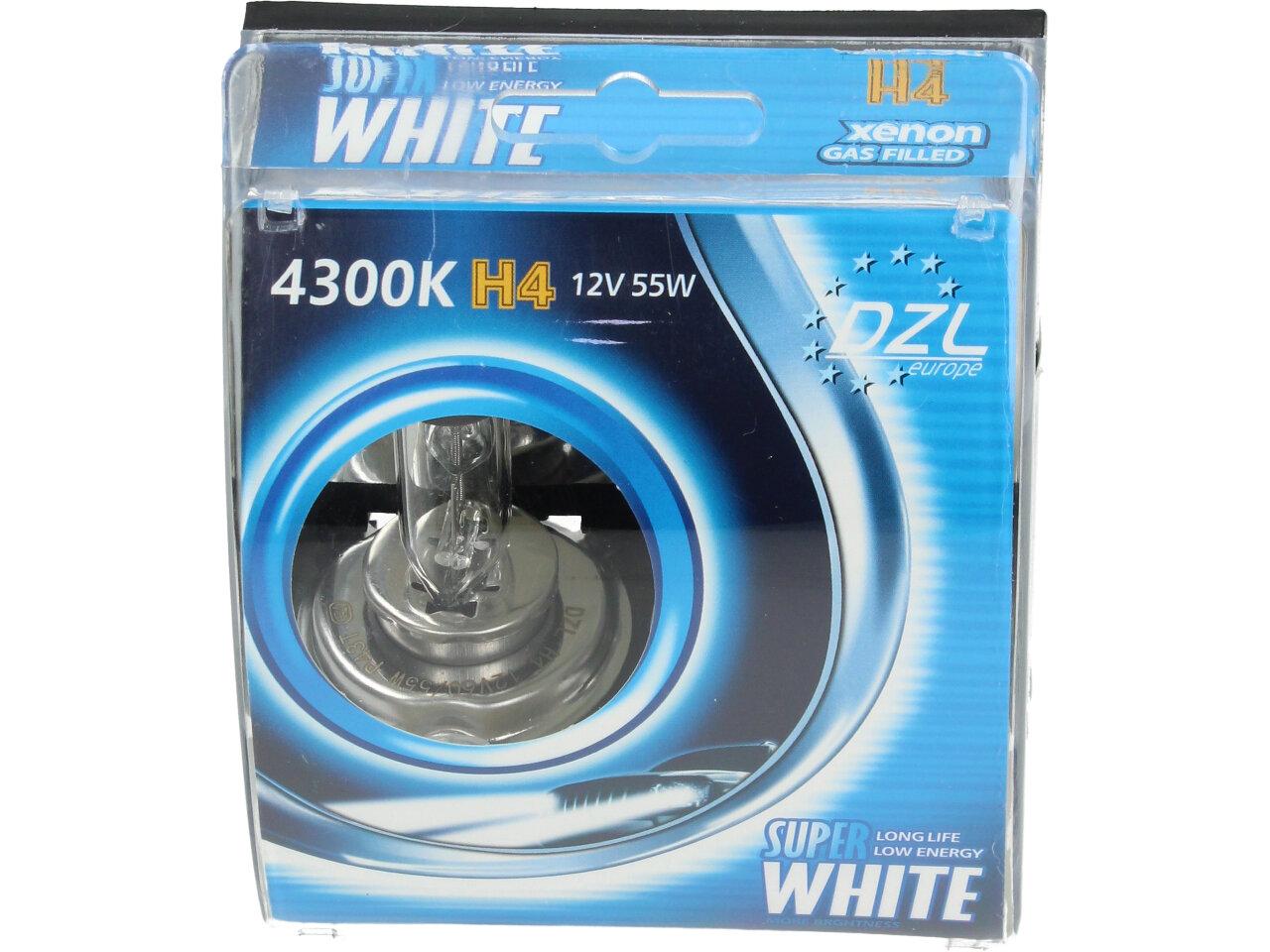 Velice odolná H4 žárovka s barvou světla 4300K sada 2 kusy do světlometu do auta na 12V jako náhrada za klasickou nevýkonou žárovku H4.
