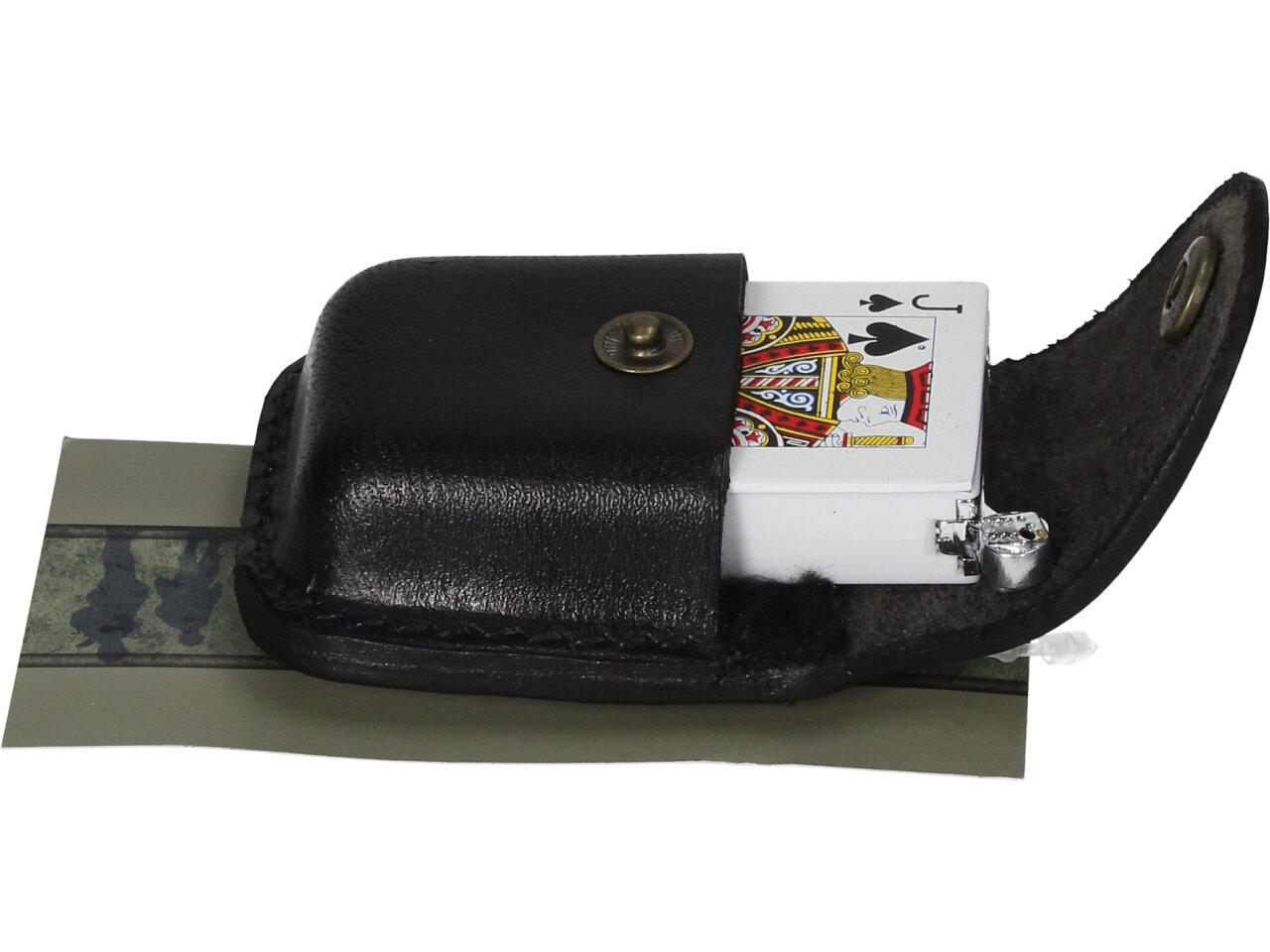 Pouzdro na zapalovač z kůže a kovovou přeskou na cvoček. Tot kvalitní pouzdro si připnete k pásku, kalhotám, k batohu a budete vždy vědět, kde zapalovač máte a nemusíte ho pořád hledat po kapsách. Kvalitní vkusný dárek pro každého kuřáka.
