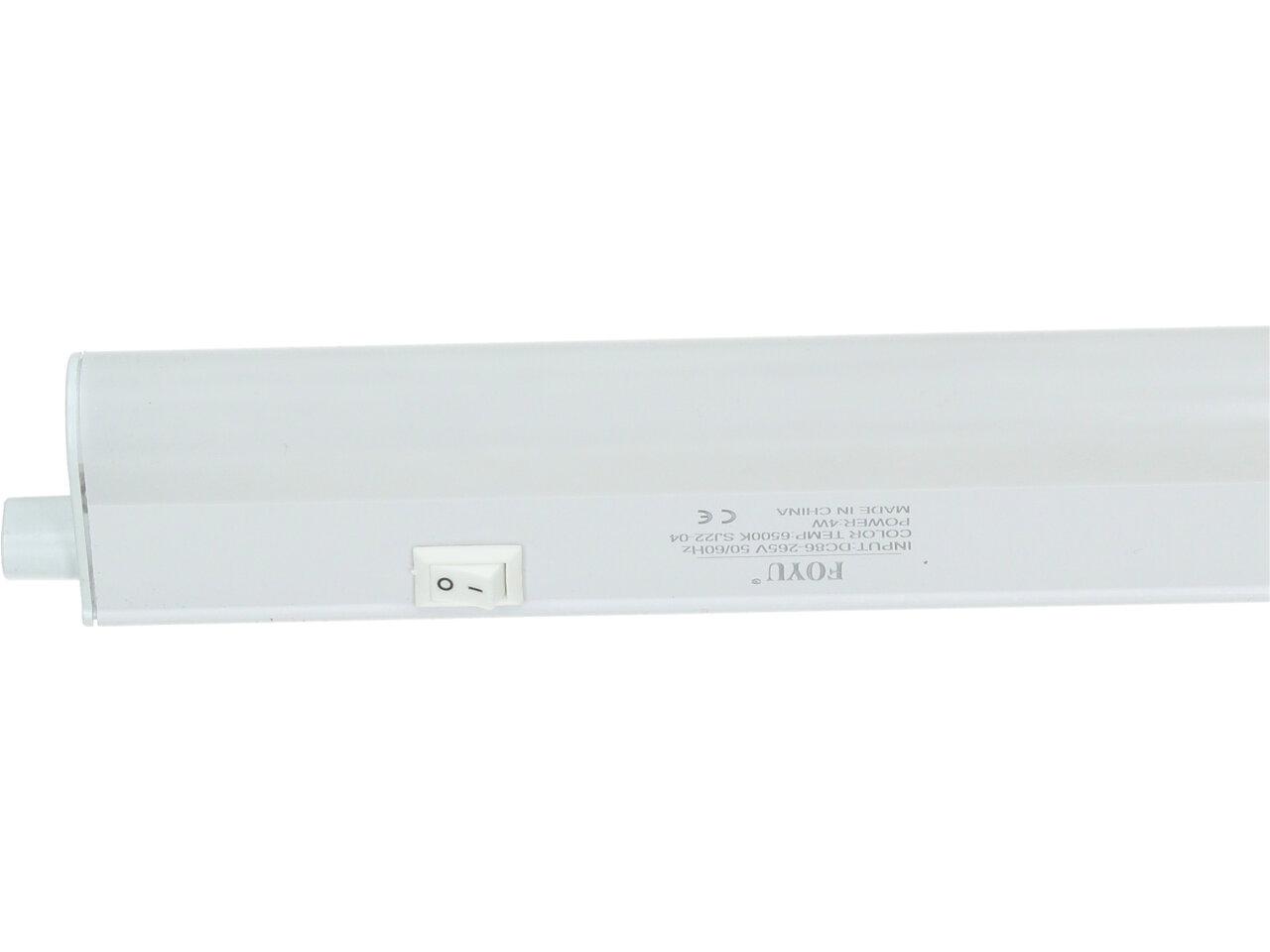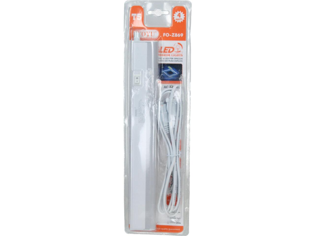 Zářivka komplet T5 - 4W Foyu FO-Z869 je kompletní zářivkové svítidlo s životností 30.000h opatřené vypínačem, kabelem, svítivostí 350 Lumenů, úhlem svitu 270 stupňů a výkonem 4W. Je zabudovaná do plastového krytu s ovladačem pro zapnutí a vypnutí a 130cm dlouhým kabelem pro připojení do zásuvky na 220V-240V. Ovládá se kolébkovým vypínačem. Své využití najde v kuchyni, prádelně, dílně, garáži, pracovně atd. Zářivka poskytuje mnoho jasného světla.