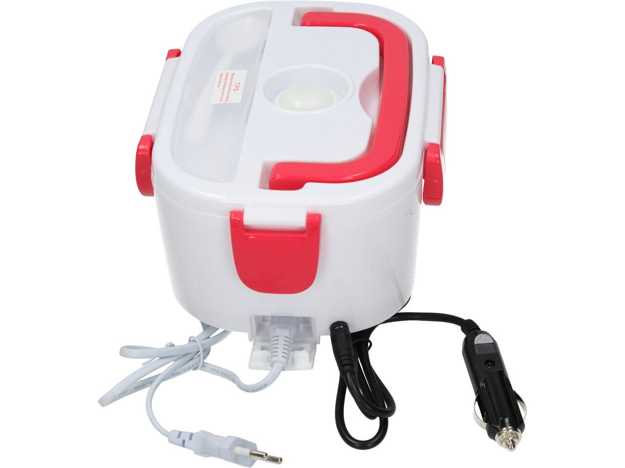 Elektrický obědový box se lžící je ideální společník na cesty i do práce. S elektrickým, obědovým boxem už můžete kdykoliv a kdekoliv jíst teplé a čerstvé jídlo jako doma. Box je odolný vůči vysokým teplotám. Parní zařízení je navrženo jako kulatý kryt, čímž udrží potraviny čerstvé. Použití topných prvků PTC je bezpečnější, pohodlnější a úspornější. Dvojitá funkce pro vytápění a udržování teploty. Box je vybaven rukojetí, čtyřmi uzavíracími prvky na víku, otvorem pro odvod páry a přihrádkou na příbory (plastová lžička v ceně). Vnitřní prostor je rozdělen na dvě samostatné přihrádky (jednu lze vyjmout). Praktické a snadné použití, čištění i přenášení.