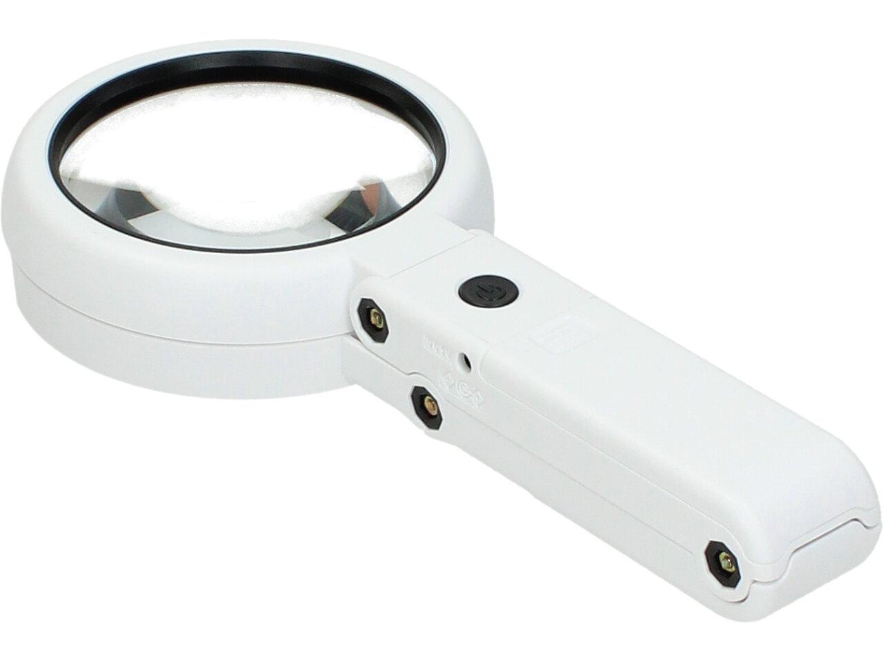 Světlo LED lze snadno zapnout a vypnout pomocí tlačítka na rukojeti, což zajišťuje jednoduché ovládání. Baterie jsou součástí balení, takže lupa je připravena k použití ihned po rozbalení.