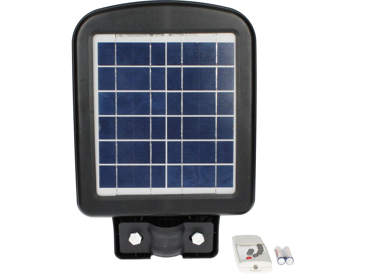 Solární pouliční lampa se senzorem pohybu je vhodná pro místa bez přístupu k elektřině. Ideální pro osvětlení zahrad, vjezdů garáží, altánů, ulic, chodníků. Detekční úhel: 120°. Lampa se po setmění nebo detekci pohybu automaticky zapne. Maximální výdrž baterie je 8 - 10 hodin. Lze ovládat pomocí dálkového ovladače ve vzdálenosti až 5m od reflektoru. Maximální detekční vzdálenost: 8 m. Baterie do dálkového ovládání: 2 x AAA (jsou součástí).
