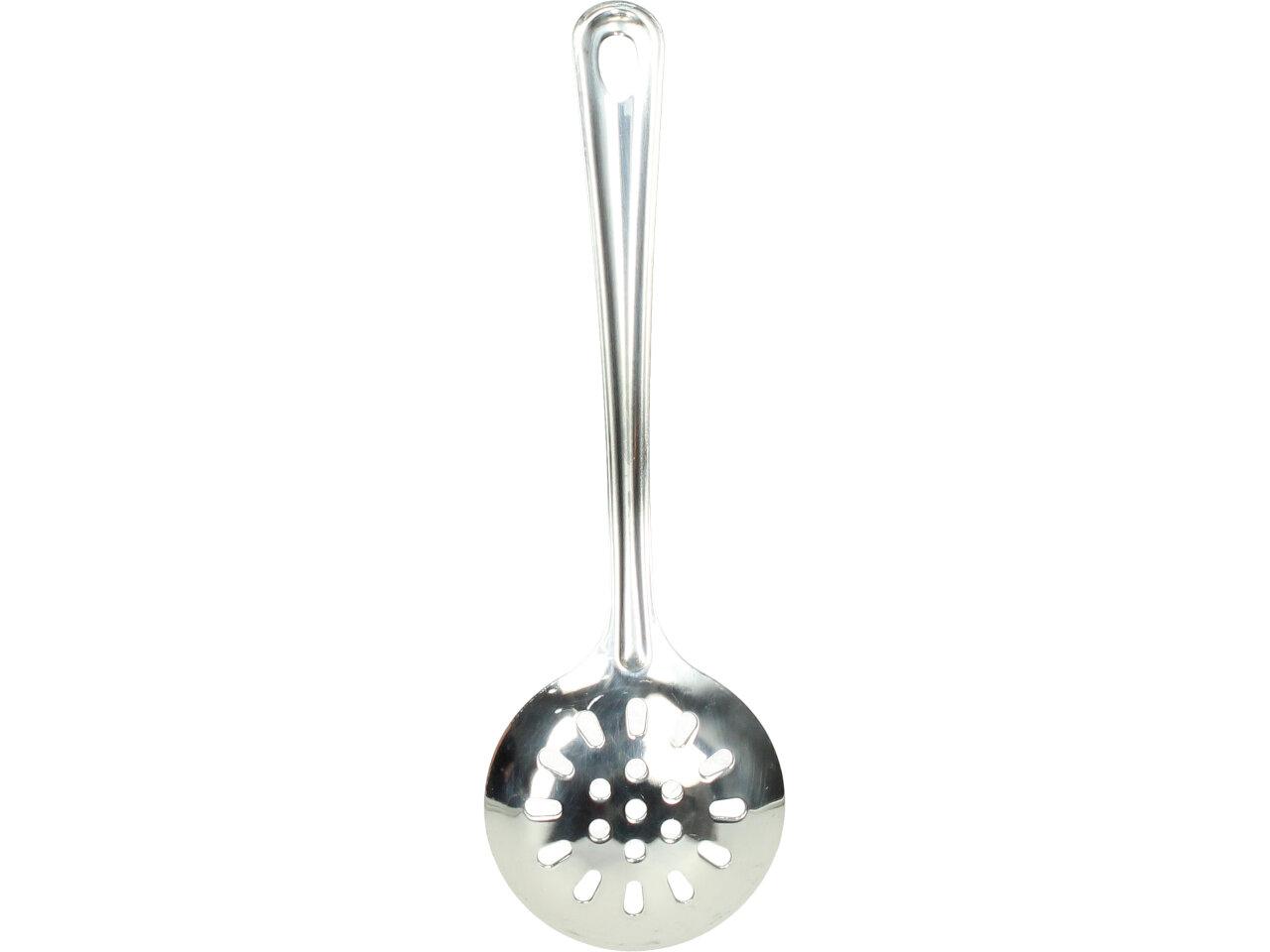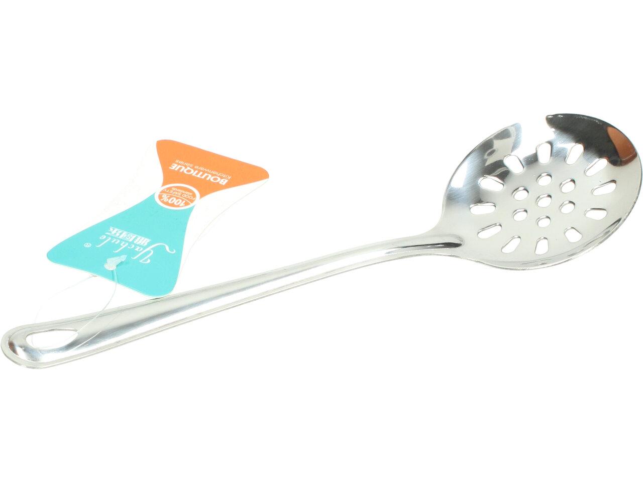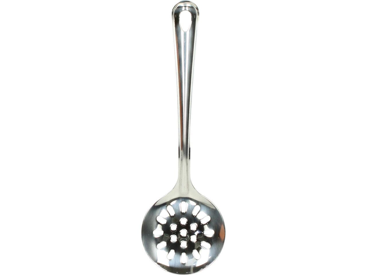 Naběračka s dírama průměr 7,5 a délka 8cm Boutique je vyrbena z nerezu, je malá a vhodná pro vyběrání například těstovín, masa, pytlíkůod čaje z hrnce apod. Její celkévá délka je 24 cm, průměr naběrátka je 7,5cm.