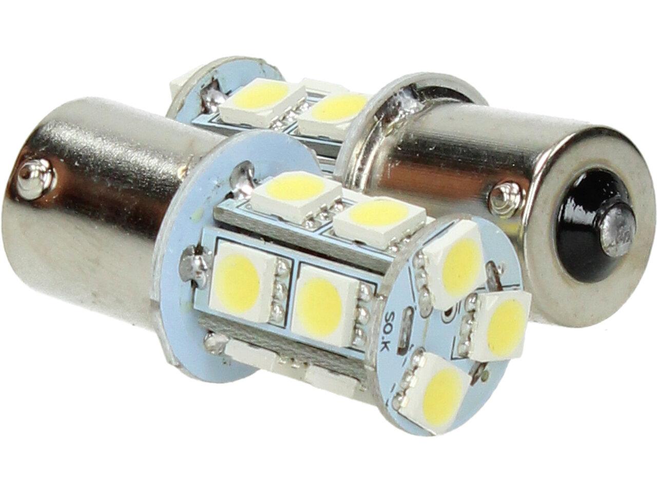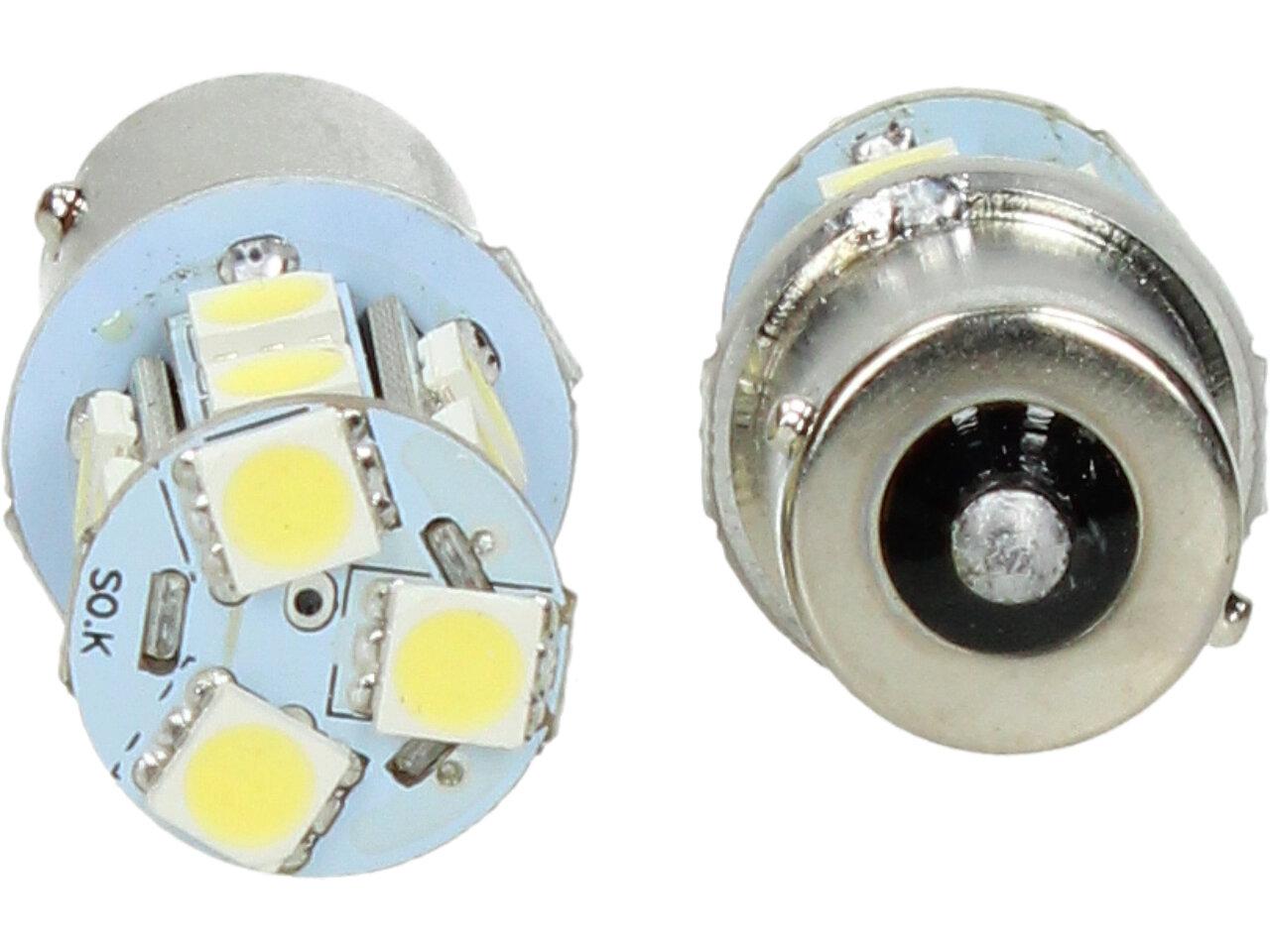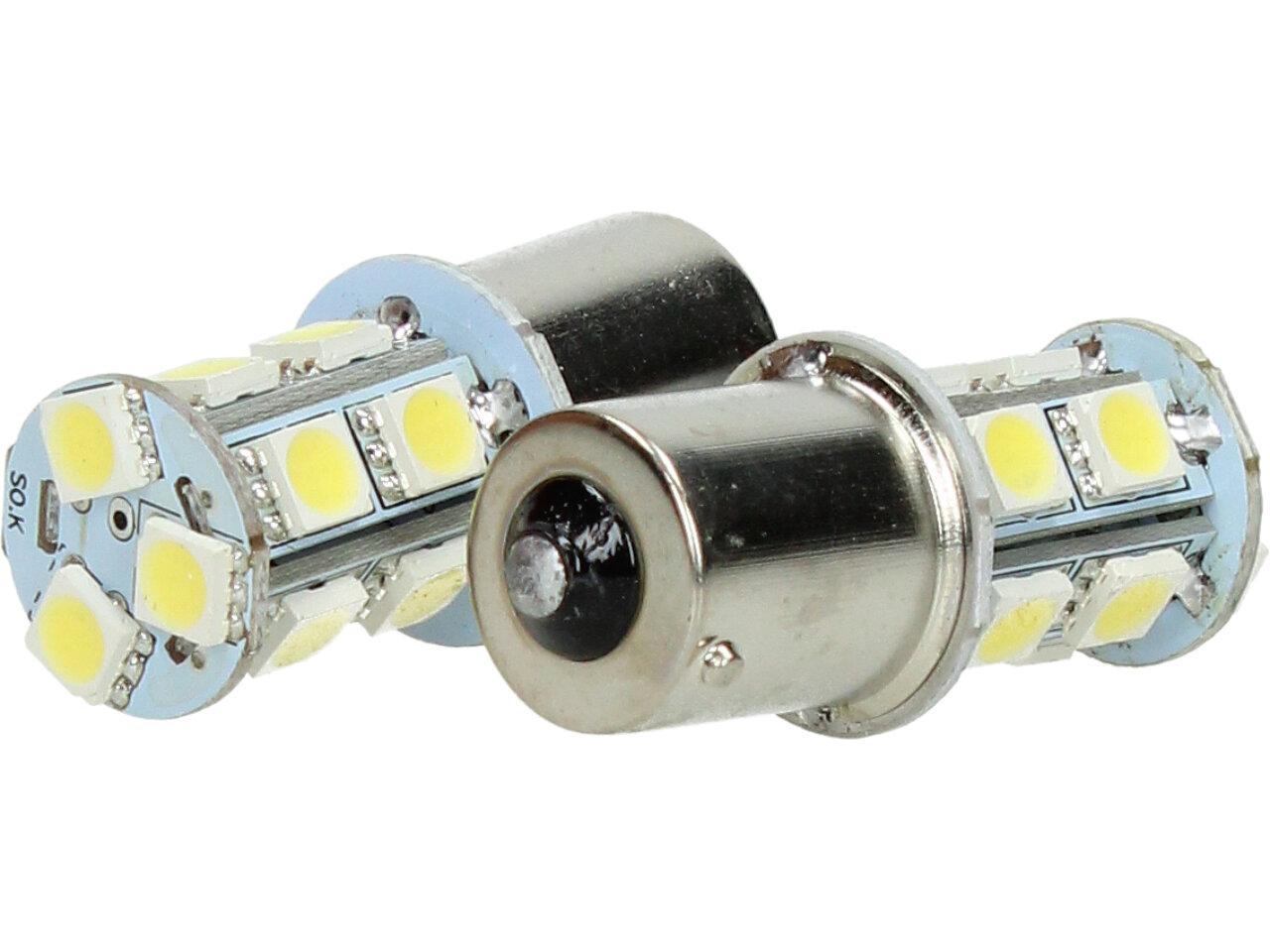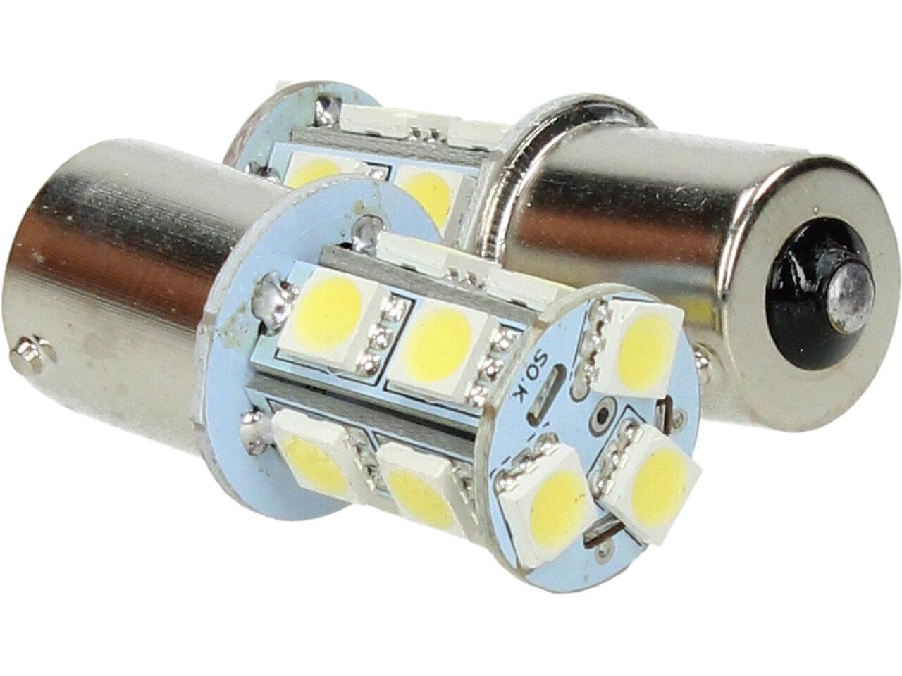 Bílá LED žárovka s paticí BA15s, jednopólová 5W sada 2ks je náhradou do zadních světel za obyčejnou jedlovláknouvou žárovku 5W, dlouhá životnost a šetří energii. Má patici BA15S a je jednopólová. Prodáváme v sadě 2 kusy.