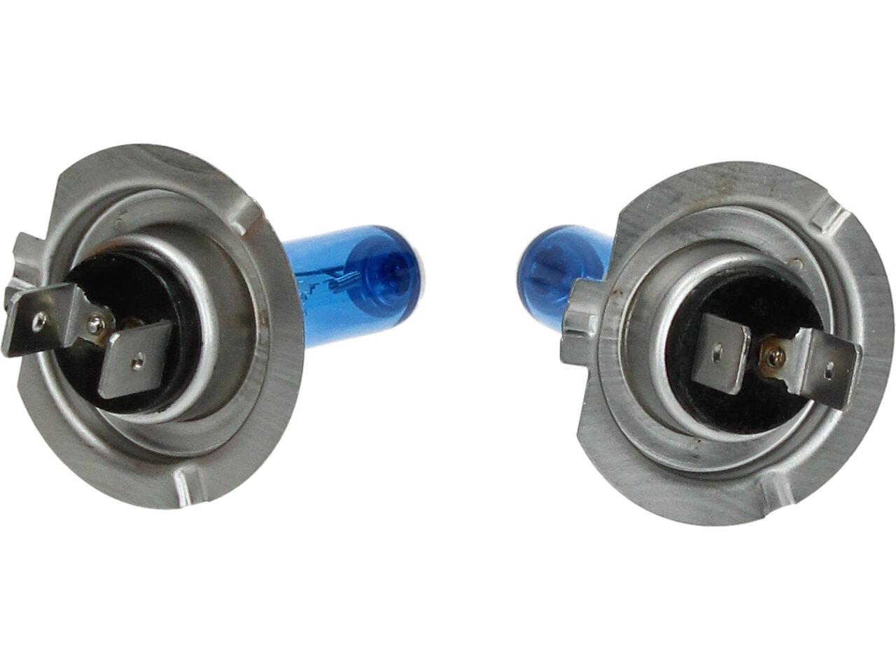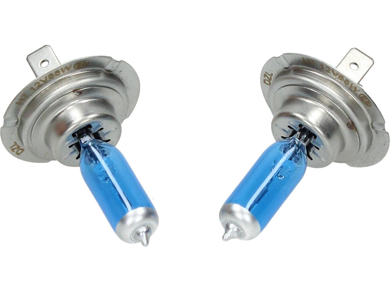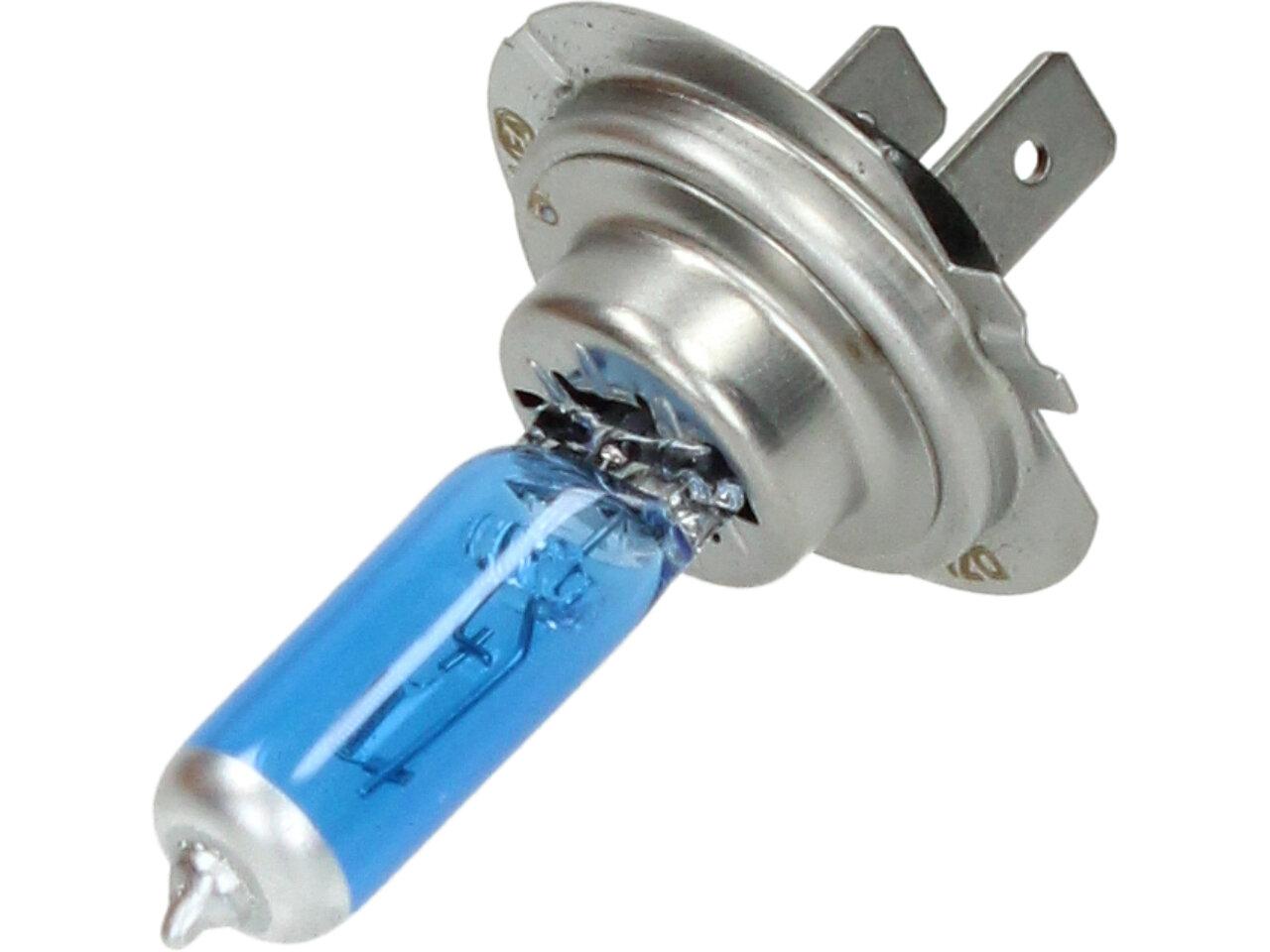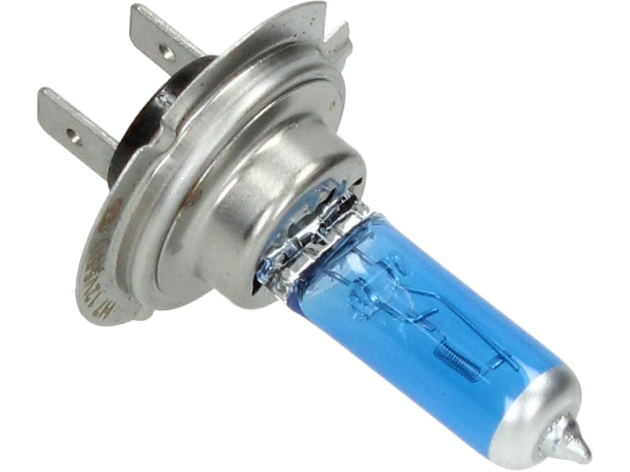 Velice odolná H7 žárovka s barvou světla 5500K (studená bílá) sada 2 kusy do světlometu do auta na 12V jako náhrada za klasickou nevýkonou žárovku H7.