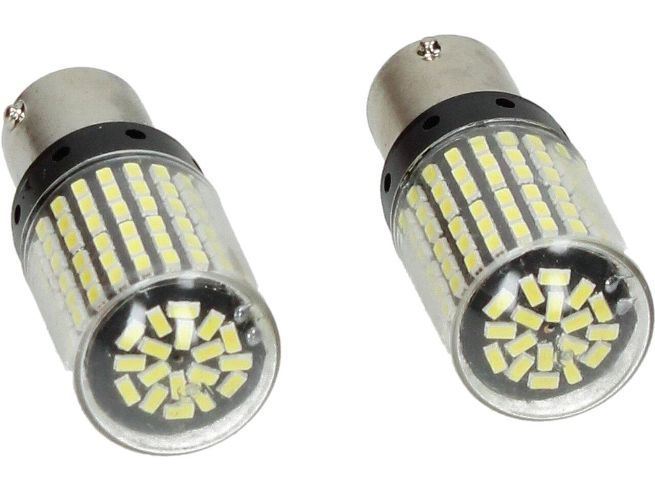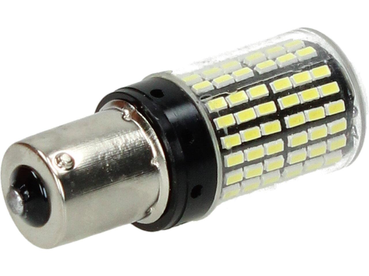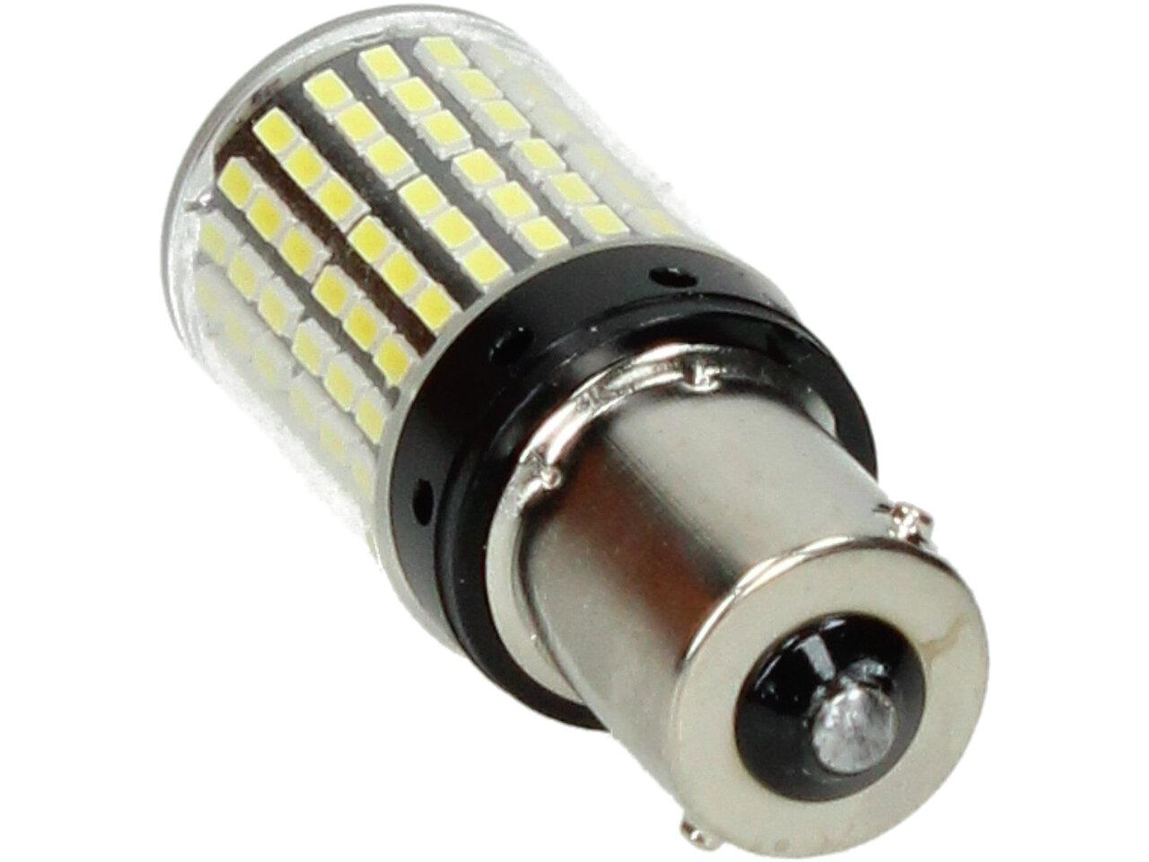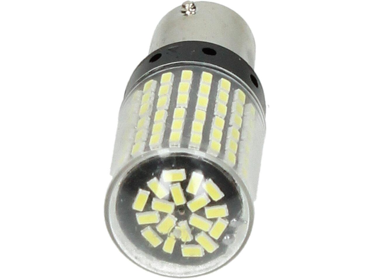 LED autožárovka canbus BA15S má 144 LED diod, barva žárovek je zimní bílá. Napětí je 12V a tyto žárovky jsou vhodné jako brzdové, nebo zpětné světlo.