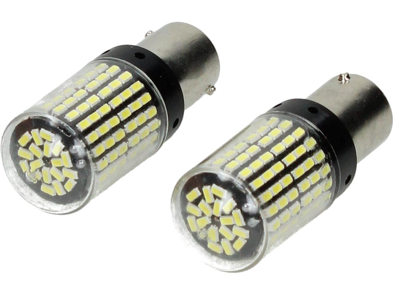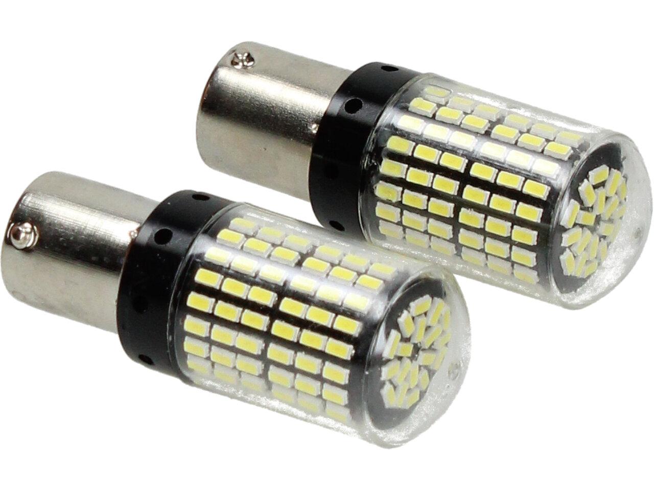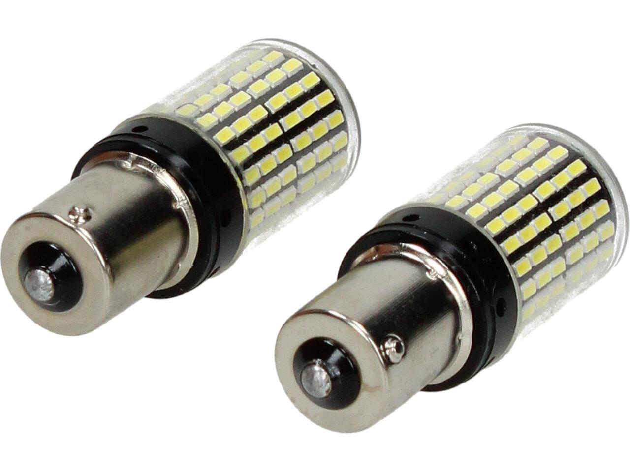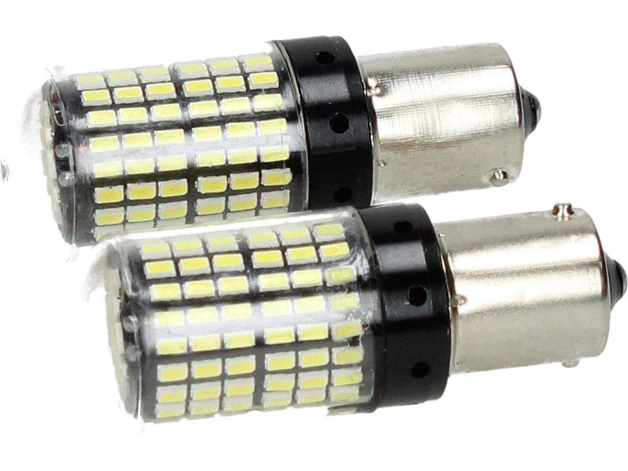 LED autožárovka canbus BA15S má 144 LED diod, barva žárovek je zimní bílá. Napětí je 12V a tyto žárovky jsou vhodné jako brzdové, nebo zpětné světlo.