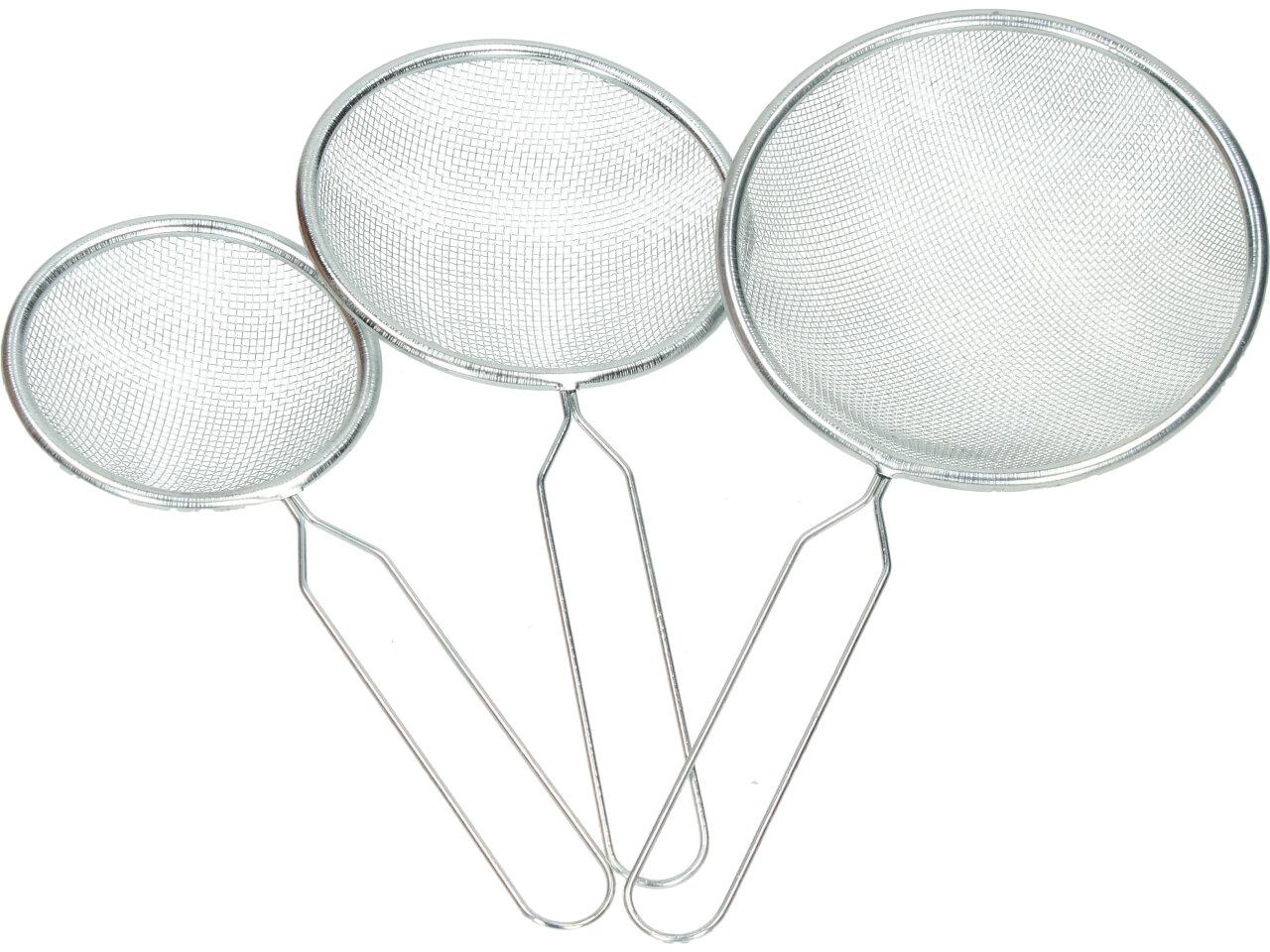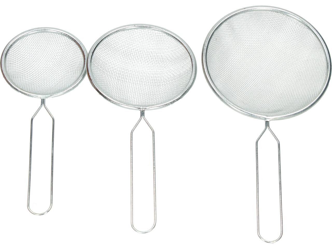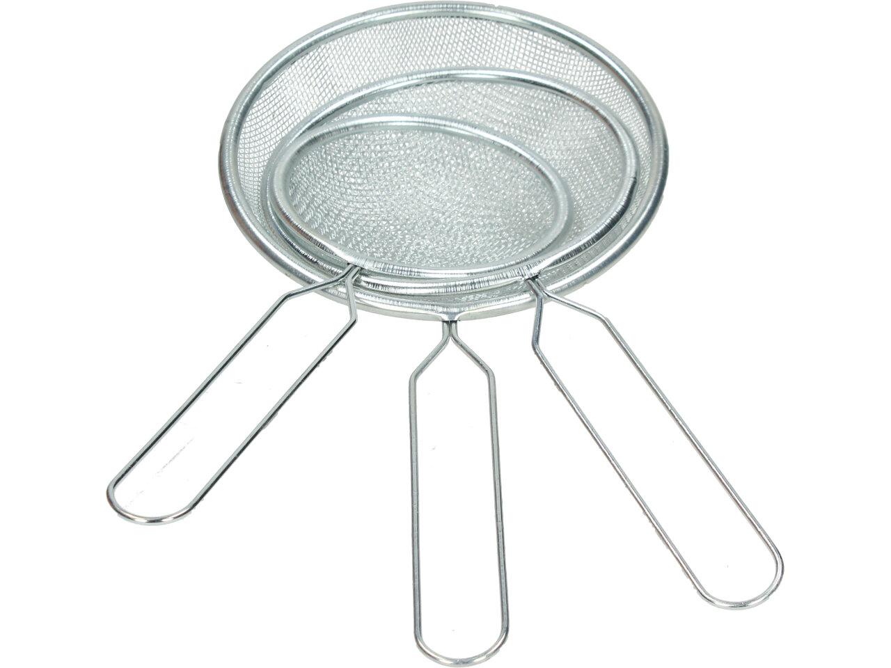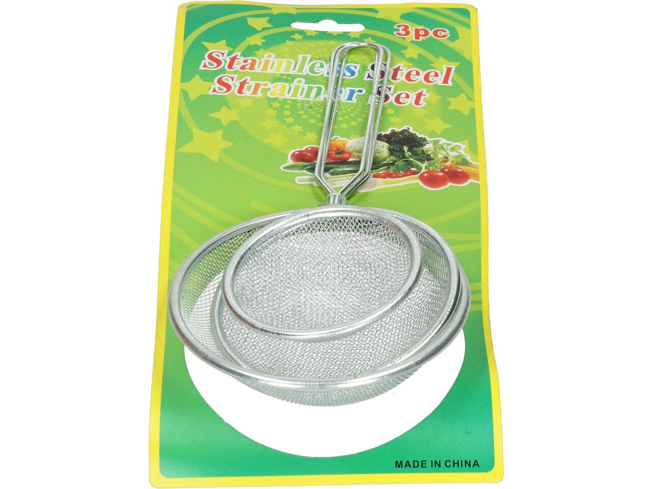 Sada obsahuje tři různě velké sítka o průměru 8 cm, 10 cm a 12 cm, které jsou ideální pro použití s různě velkými hrnci a pánvemi. Sítka jsou vybavena pevnou rukojetí, která umožňuje snadné a bezpečné držení a přepasování potravin.