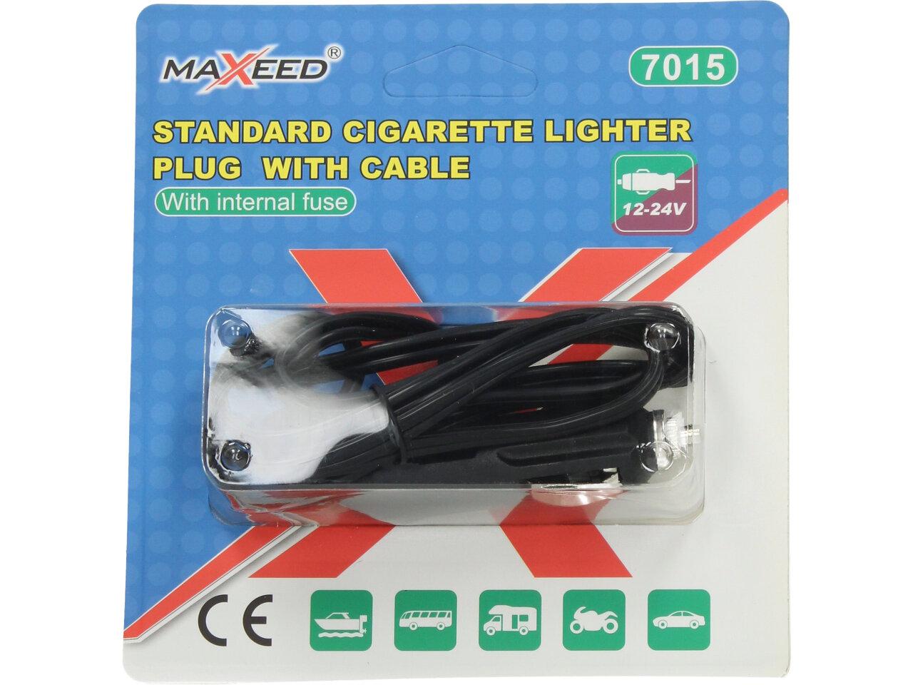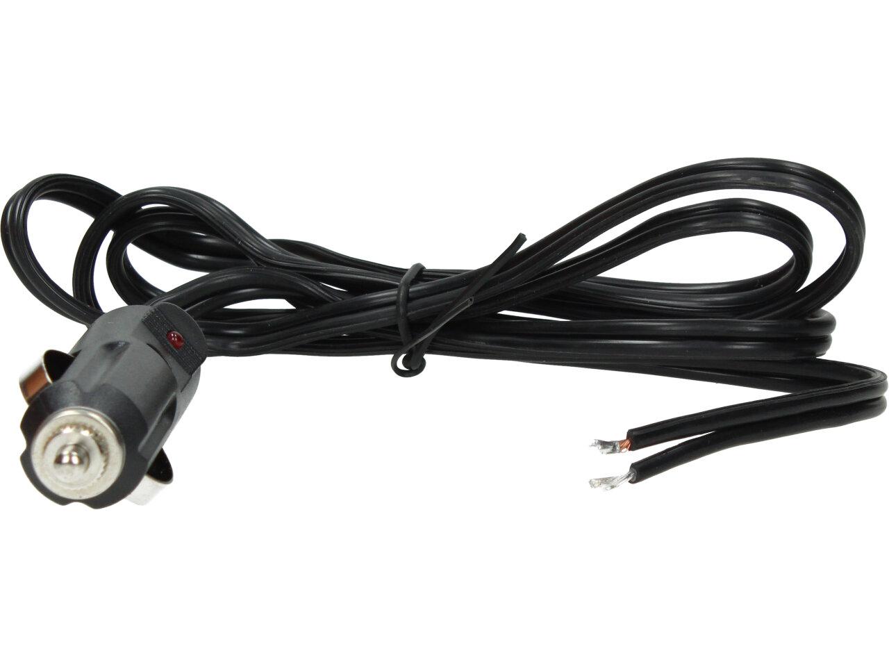 Autozapalovací zástrčka s kabelem o délce 140 cm s napětím 12V. Průměr 20 mm a maximální zatížení 8 A.