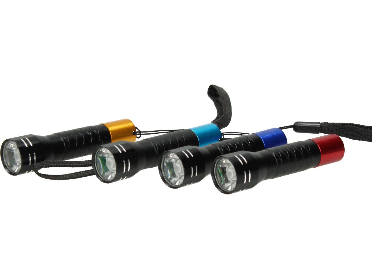 LED malá kovová baterka 8 cm klasického oválného tvaru je vyrobena z kvalitní slitiny aluminia. Baterka je pevná, nerozbytná, ale zároveň lehká do ruky. Baterka je napájena na jednu AAA baterii (baterie není součástí balení) 1,5 V. Svítilnu dodáváme ve čtyřech barvách: tmavě modrá, světle modrá, červená, oranžová. Baterka je vhodná na dětské tábory, rybaření, kempování, ale také poslouží, když vám vypadne proud v domácnosti. Baterku si můžete zacvaknout za opasek.