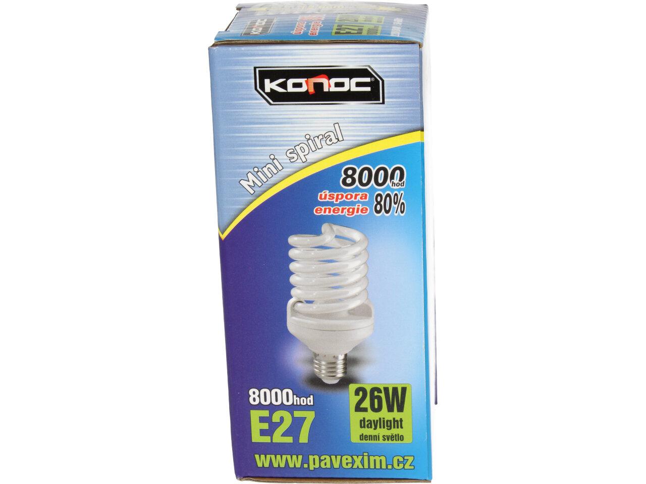 Úsporná mini žárovka 26W Spiral Led je kvalitní náhrada za klasickou žárovku. Žárovka je ve skleněné trubici, umožňující dobré chlazení LED diod, které mají dlouhou životnost. Žárovka je určena na napětí 220V a vyzařuje teplotu světla 6400 K.