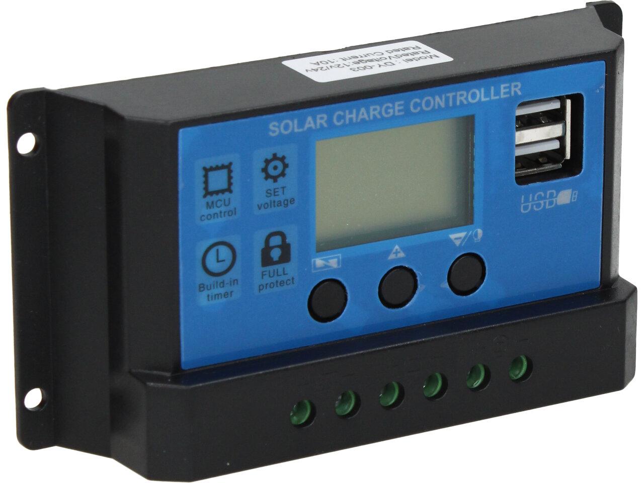 PWM regulátor umožňuje nabíjení olověných baterií proudem až 10A a připojení FV panelů s výstupním napětím max. 25V. Je vybaven LCD displejem pro nastavení a zobrazení provozních parametrů. Regulátory jsou vhodné pro panely se shodným systémovým napětím jako je napětí baterie, jinak dochází ke ztrátám, kdy se část výkonu zmaří vlivem nevhodné V-A charakteristiky panelu.