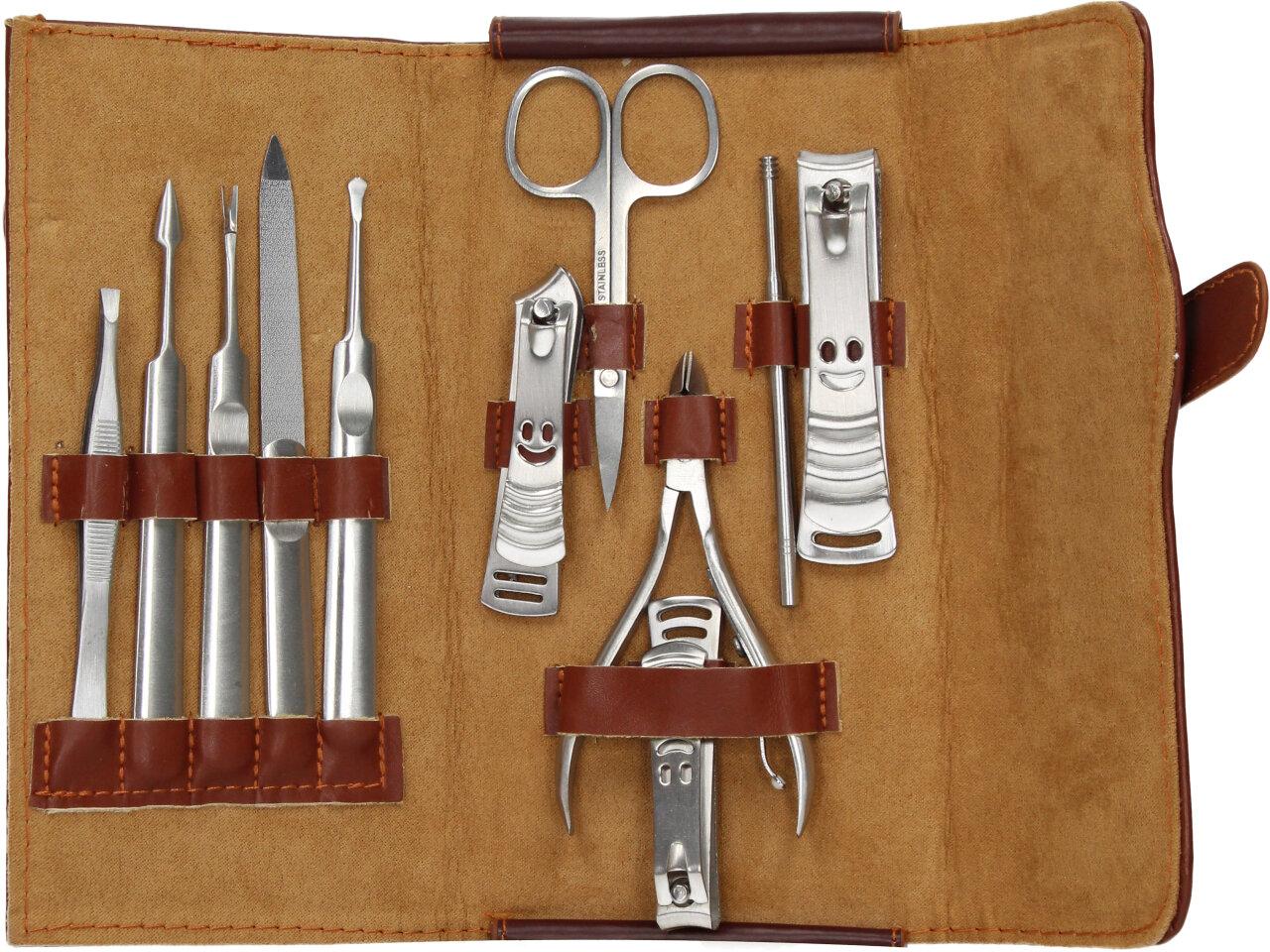 Manikúrní 11 dílní sada je soubor nástrojů, které se používají k úpravě nehtů na rukou a nohou. Sada obvykle obsahuje různé nástroje, jako jsou nůžky na nehty, pinzety, pilníky, škrabky na nehty a další nástroje pro úpravu a péči o nehty.