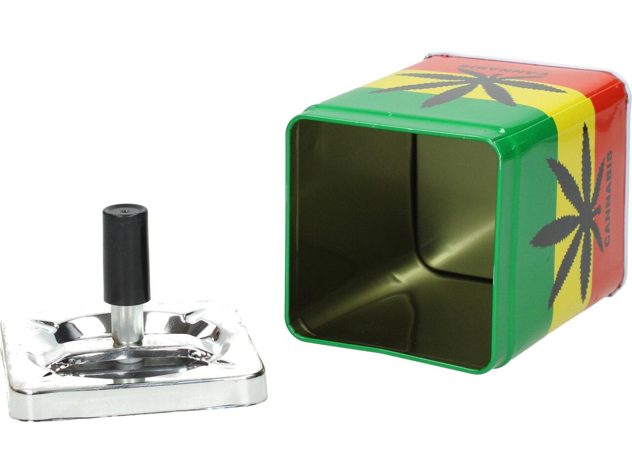 Hranatý popelník se zásobníkem v designu hrací marihuana je zajímavý a zábavný prvek pro interiéry, které mají rády neformální a hravou atmosféru.