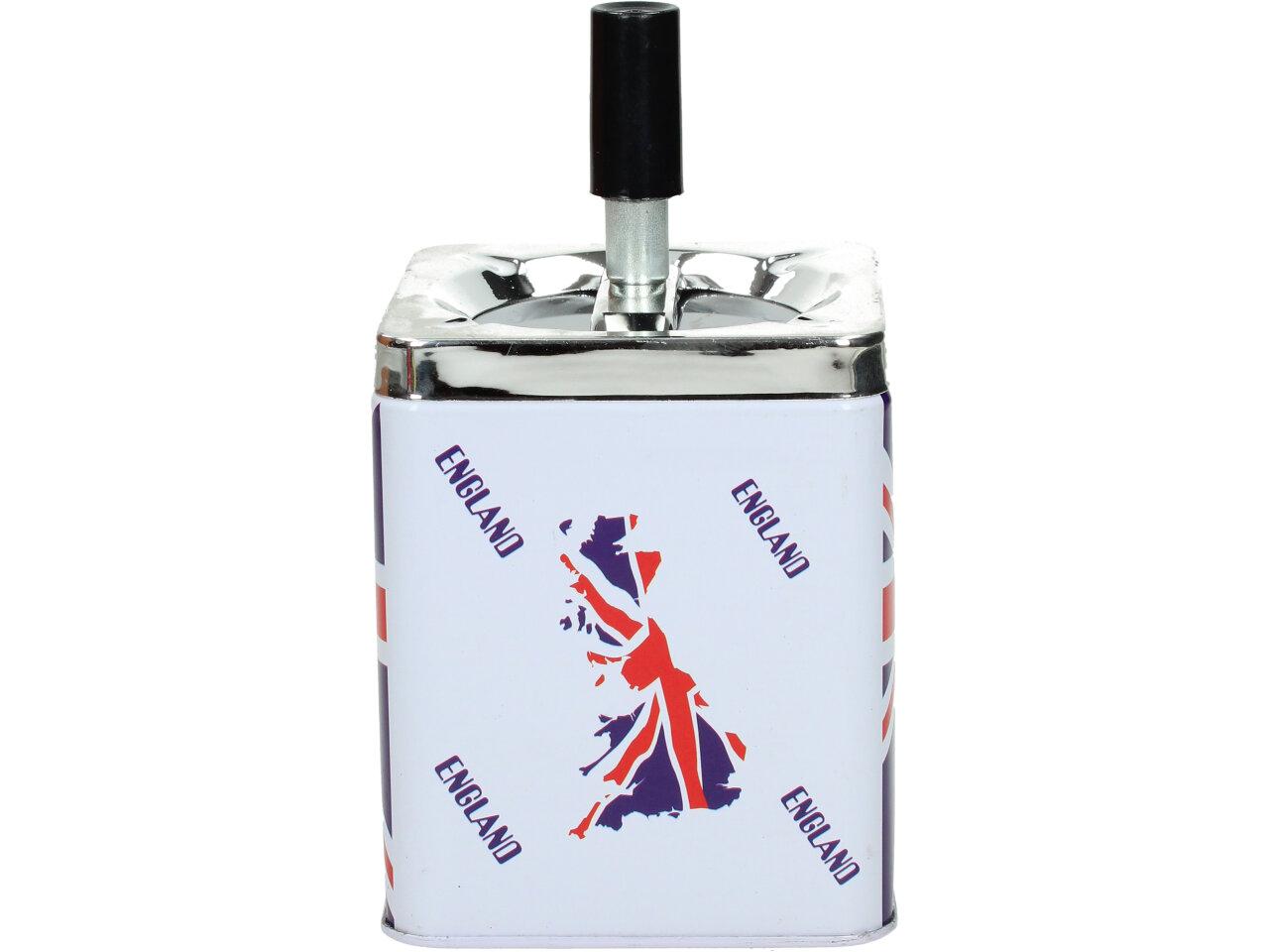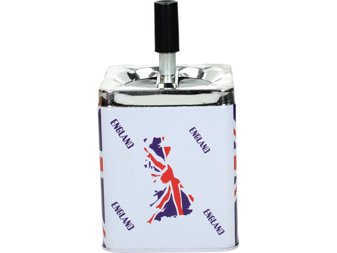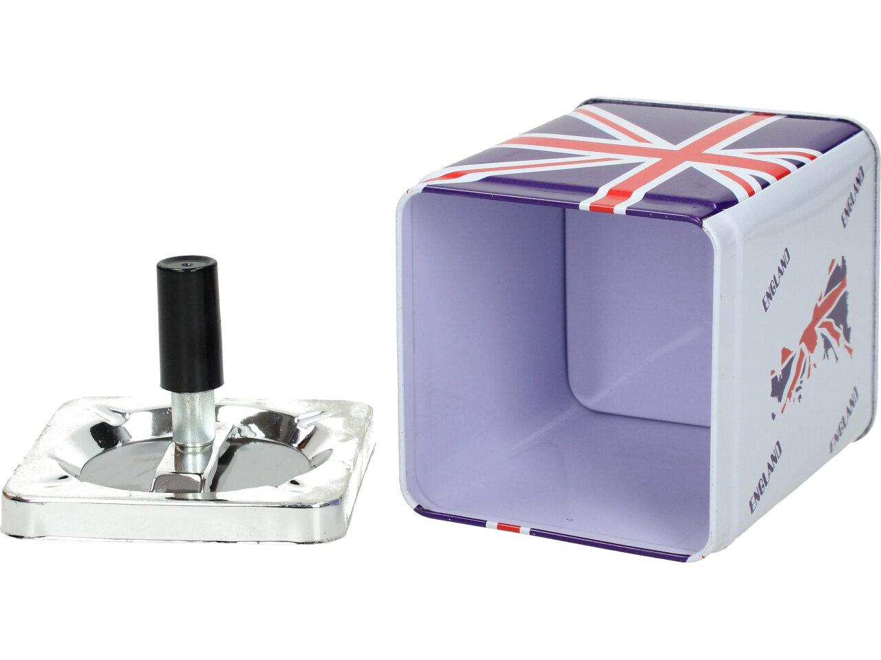 Hranatý popelník se zásobníkem je vyroben z plechu a je opatřen motivem Anglie. Popelník se zásobníkem je zajímavým a vtipným designovým prvkem pro interiéry, které mají rády neformální a hravou atmosféru.
