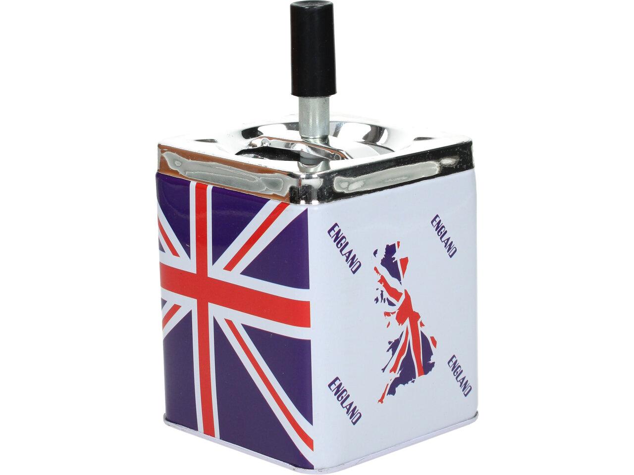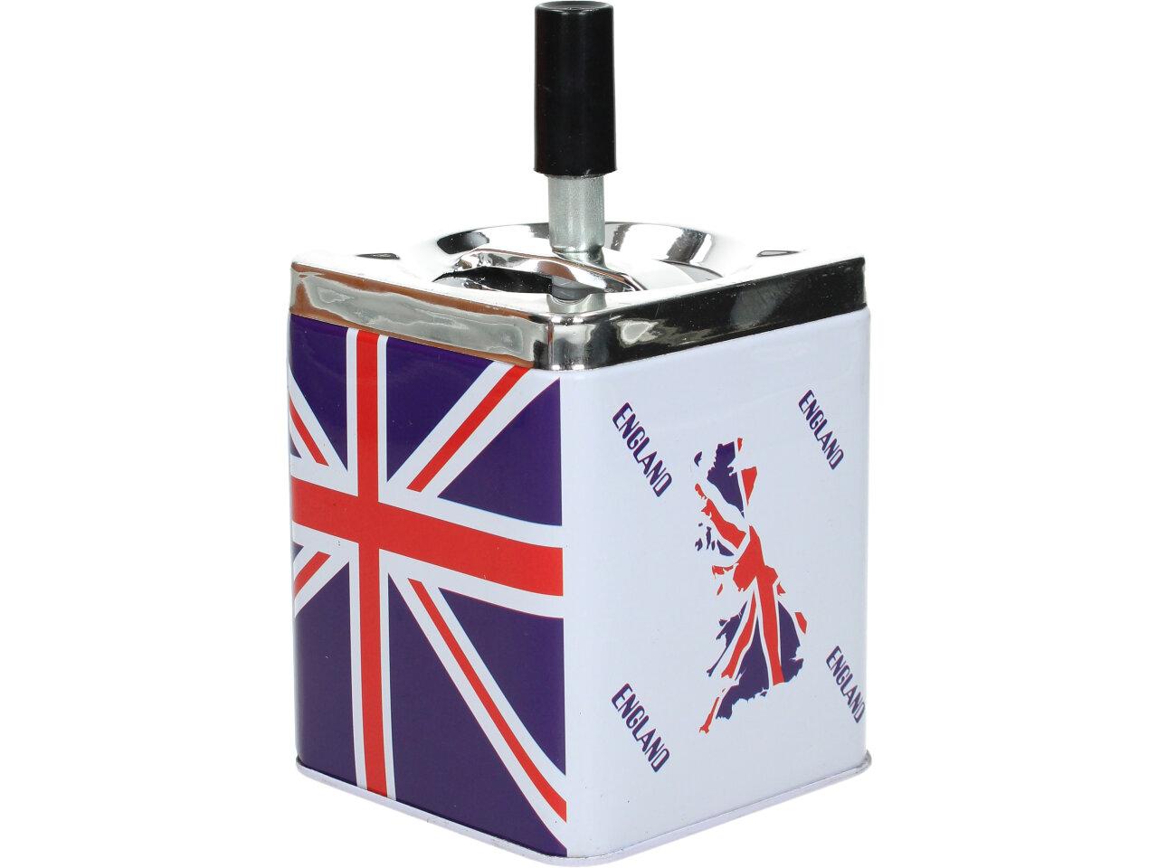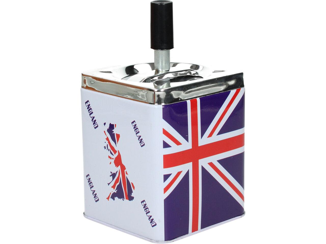 Hranatý popelník se zásobníkem je vyroben z plechu a je opatřen motivem Anglie. Popelník se zásobníkem je zajímavým a vtipným designovým prvkem pro interiéry, které mají rády neformální a hravou atmosféru.
