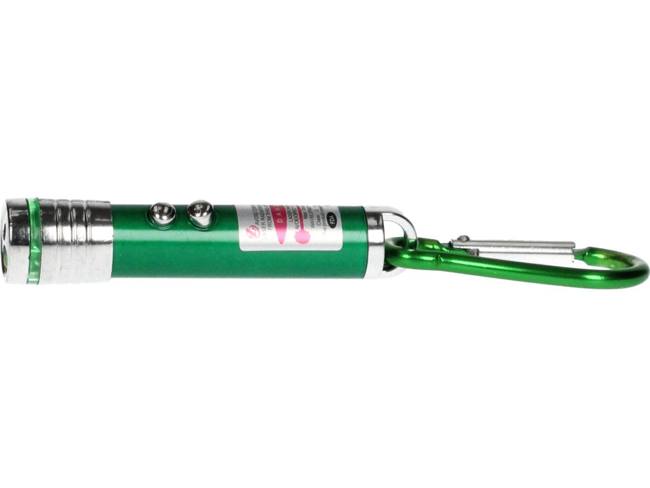 Karabina umožňuje snadné připevnění laserového ukazovátka ke kabelce, tašce nebo klíčům, takže je vždy snadno dostupné a není snadné ho ztratit. Tento produkt bývá dodáván s bateriemi a návodem k použití.