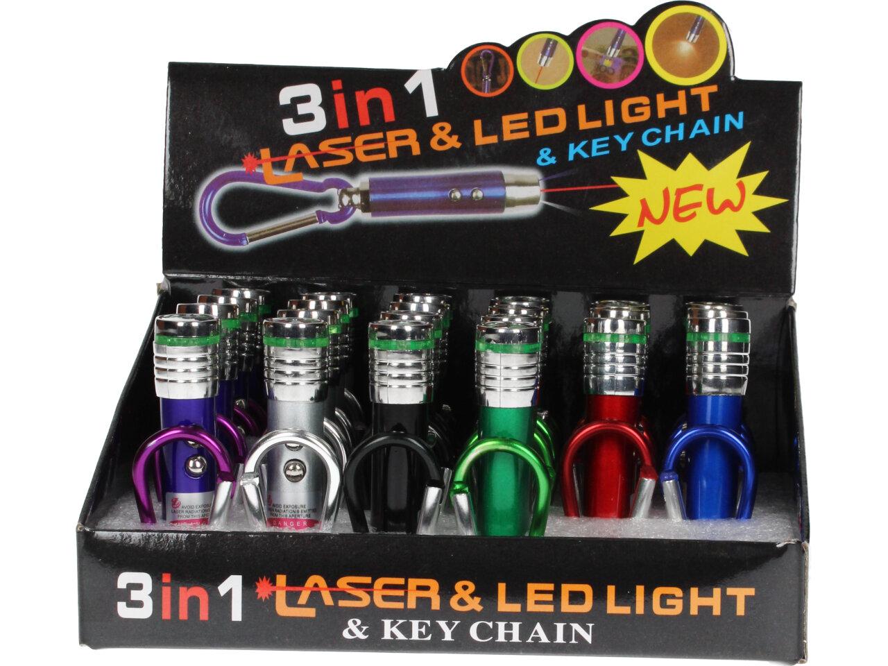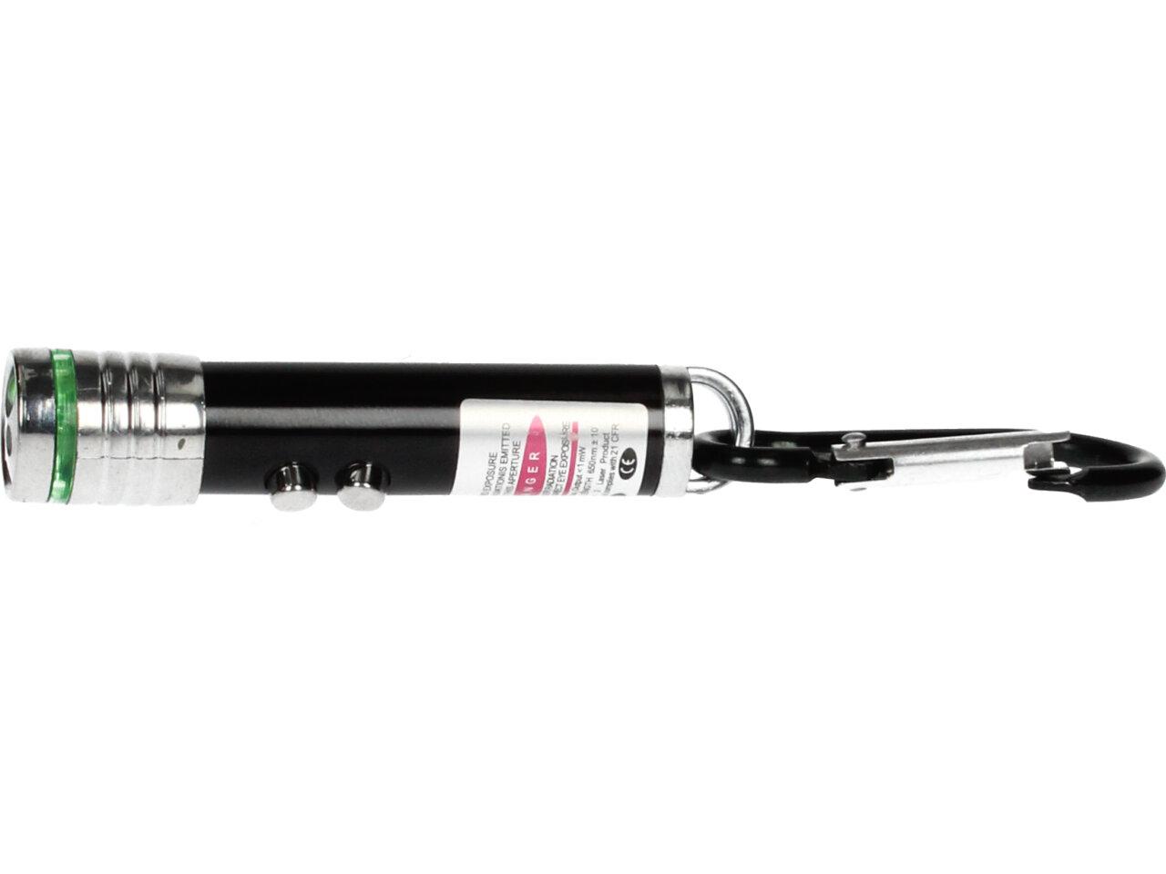 Laserové ukazovátko 3v1 s karabinou je multifunkční zařízení, které kombinuje tři různé funkce do jednoho kompaktního a snadno přenosného produktu. Tento produkt obsahuje: