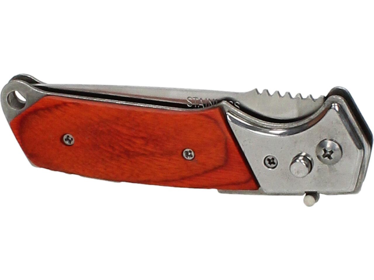 Tento kapesní vystřelovací nůž je ideální pro každodenní použití a je navržen tak, aby splňoval požadavky zákazníků na kvalitu, spolehlivost a bezpečnost. Nůž má dřevěnou střenku a je vyroben z kvalitní nerezové oceli, která poskytuje vysokou odolnost proti korozi a otěru.
