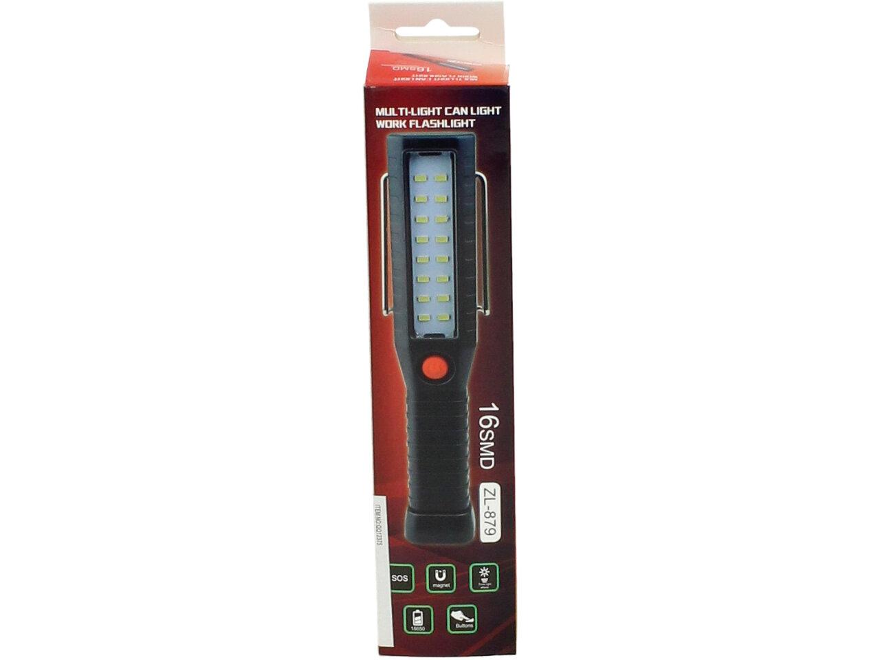 LED nabíjecí pracovní světlo s magnetem a poutkem ZL-879 má 16 SMD, pracovní světlo má tři režimy svícení a lze ho díky poutko kamkoliv zavěsit nebo díky magnetu kamkoliv připnout.