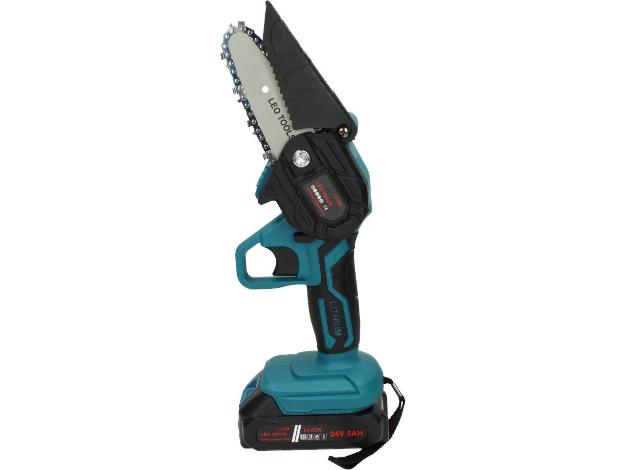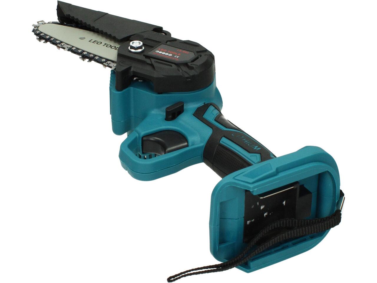- Obsah balení: pila, 2x výkonná baterie 5 000 mAh, nabíječka, řetěz, klíč, šroubovák