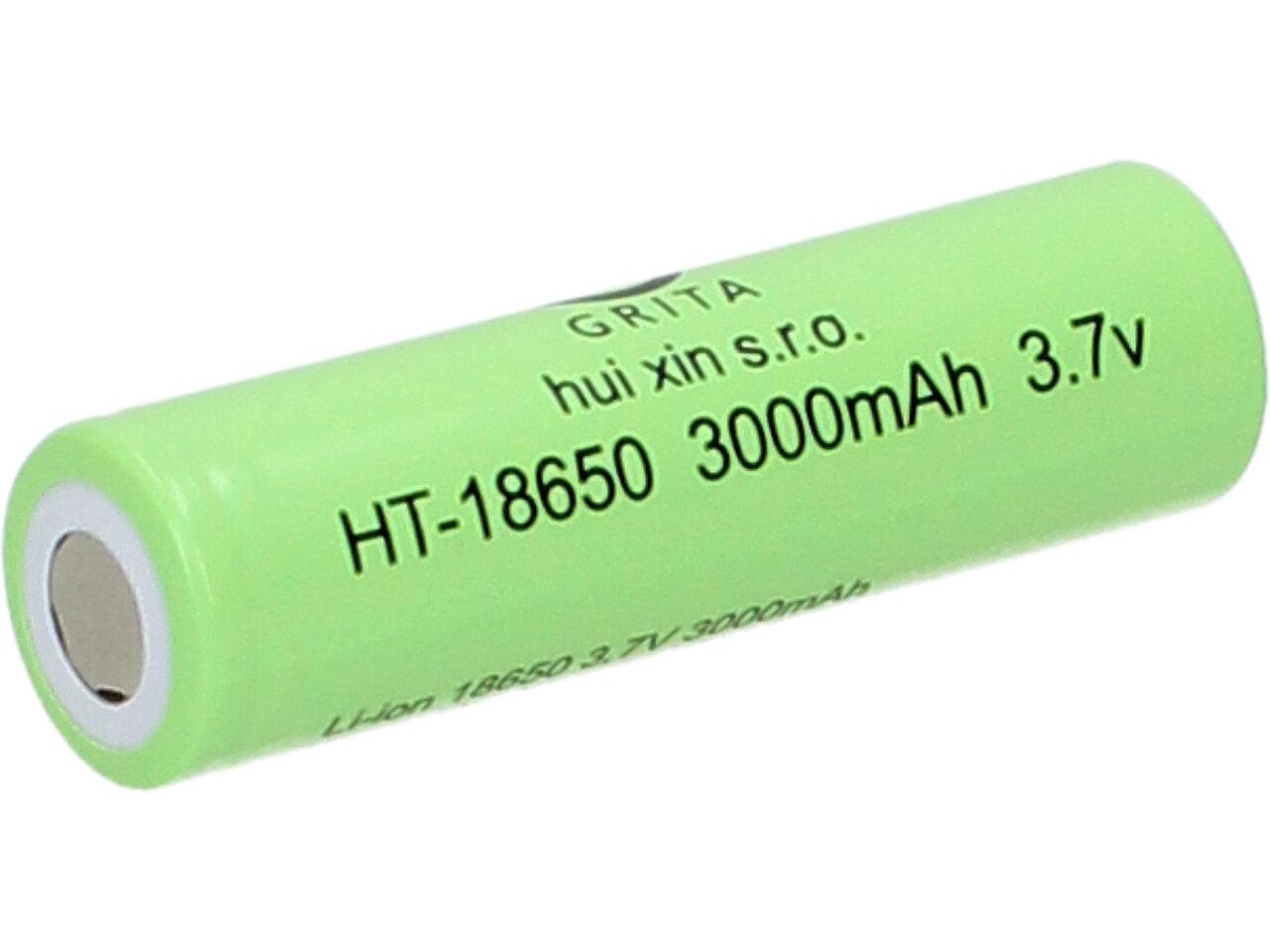 Dobíjecí baterie Grita typu HT-18650 s kapacitou 3000 mAh. Rozměry baterie jsou 65 x 18 mm. Pozor - nejedná se o tužkové baterie! Tyto baterie jsou používány zejména do RC modelů, apod.