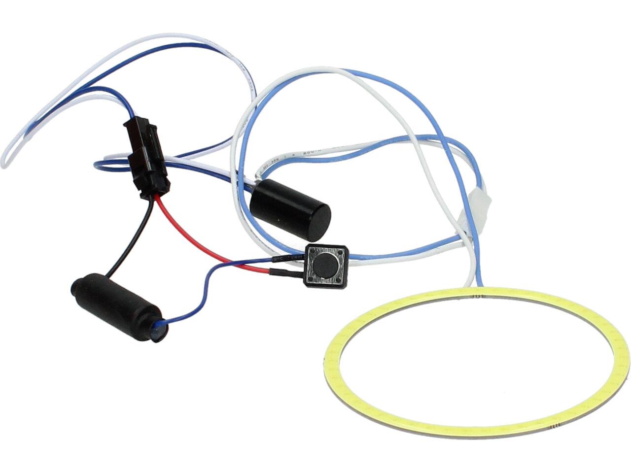 Obrysová světla kruhového tvaru ohraničující hlavní světlomety. LEDky bíle rámují světlomet což vypadá velmi působivě. Již z výroby tuto vymoženost mají vozy BMW. To neznamená, že ostatní utřou nos :) . K dostání jsou světlomety "angels eyes", ale i LED kroužky a u většiny světel jsou domontovatelné. Vetší efekt je u čiré optiky. Díky super jasným andělským očím dokáže produkovat nejsilnější a nejjasnější paprsky, jako by pár ostrých očí ve tmě. Skládá ze dvou ráfků typu halo, které mají nejen dobrý tvar, ale jsou také odolné při používání